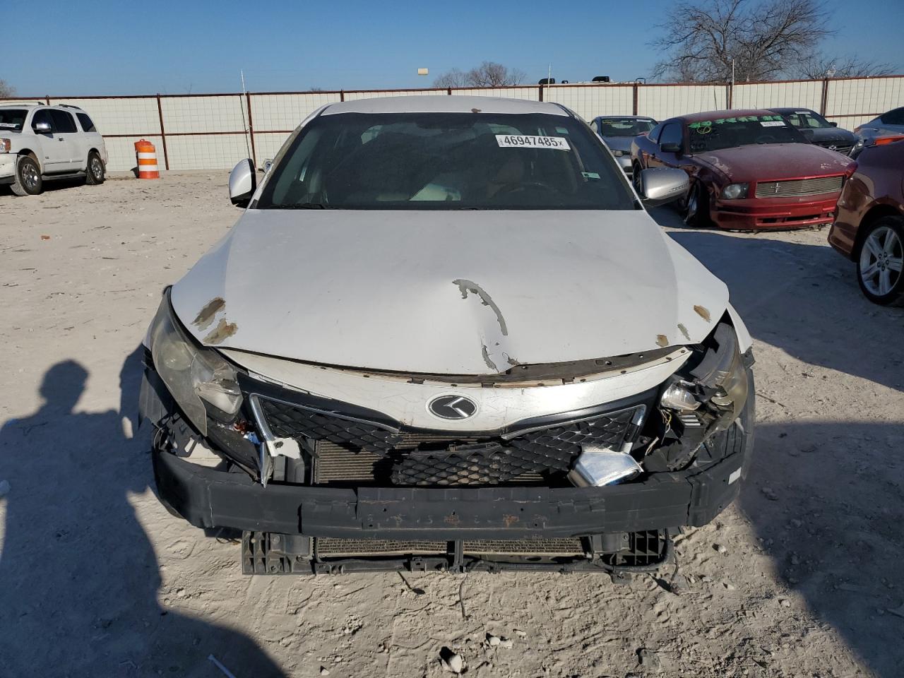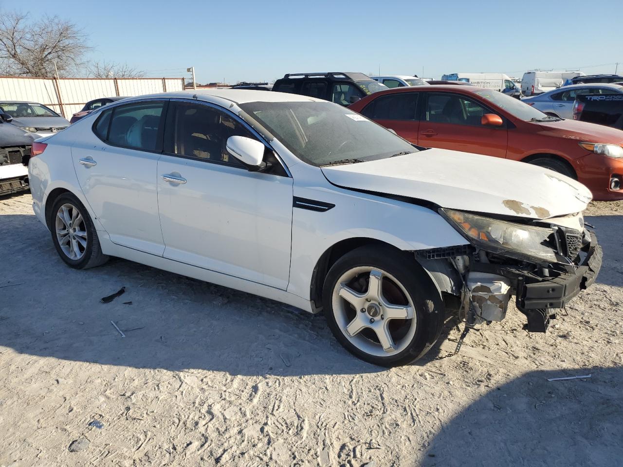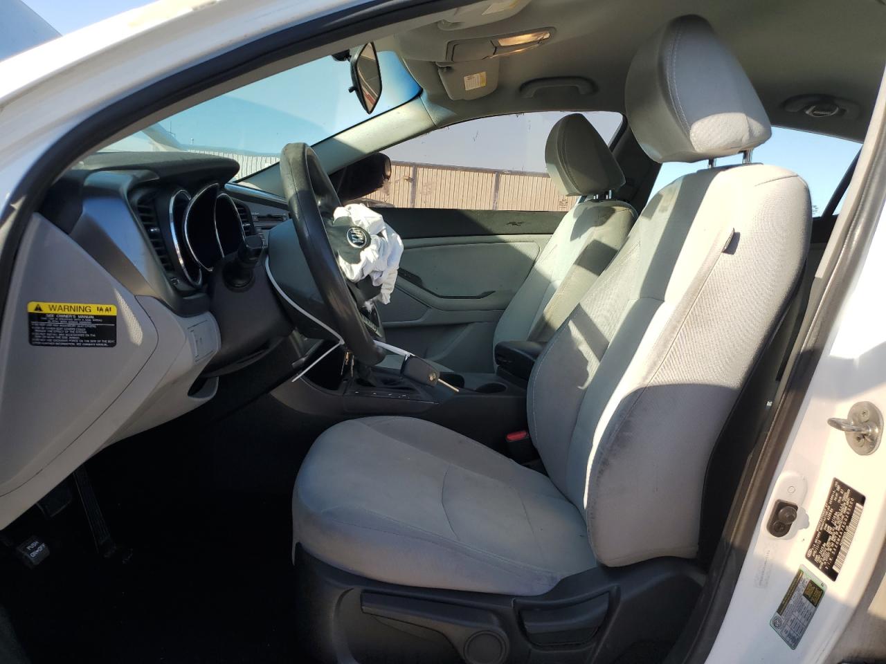 FairThis white 2013 KIA OPTIMA LX has sustained front-end damage, with visible dents and scratches. The car is a 'Run & Drive Verified' vehicle. Interior damage is present, including deployed airbags. The wheels appear to be in decent condition, and the lights and glasses seem intact, but they might be damaged as well. The car's overall condition reflects its accident history and age.