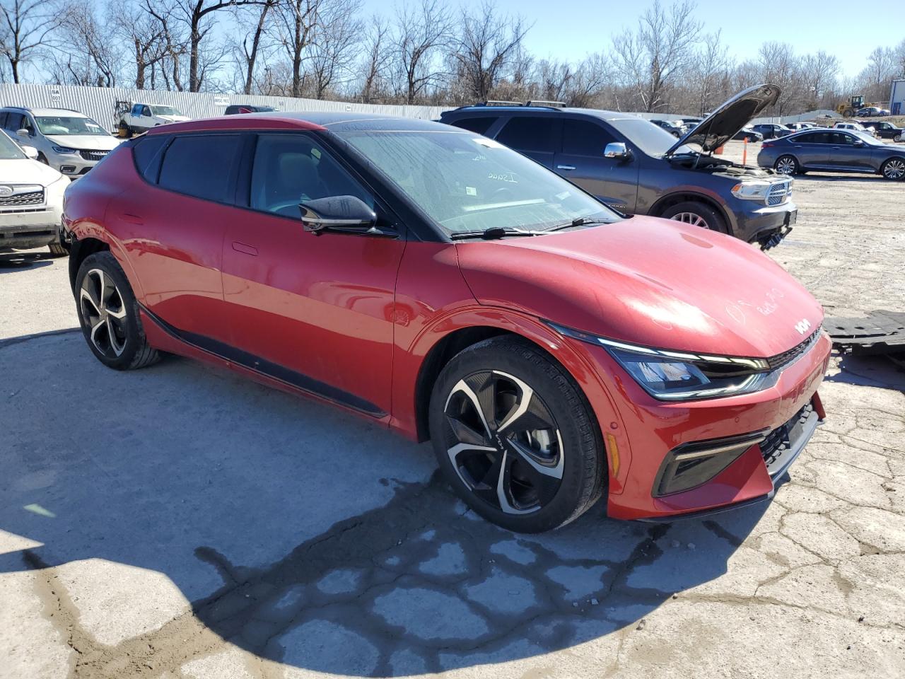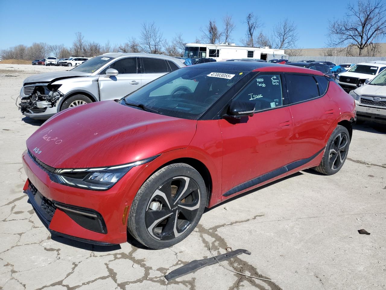 FairKIA EV6 GT-Line 2022, Red color, Run & Drive Verified. Suffered rear-end and side damage. Exterior condition is rated as Fair, with visible damage. The interior condition is rated as Good. The overall state of the vehicle is Fair. This EV6 will require repair before hitting the road.