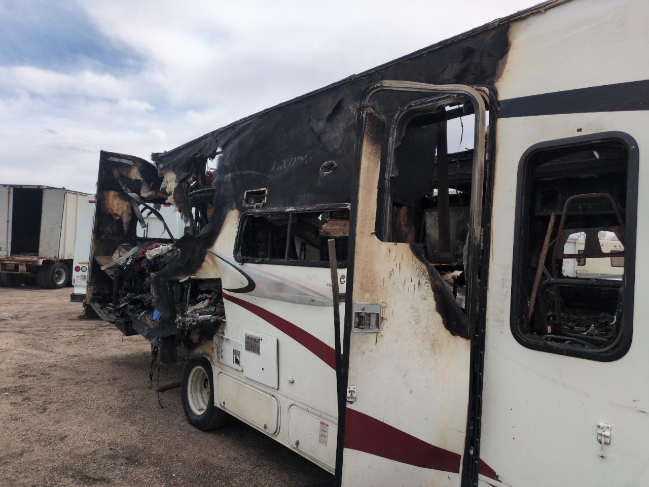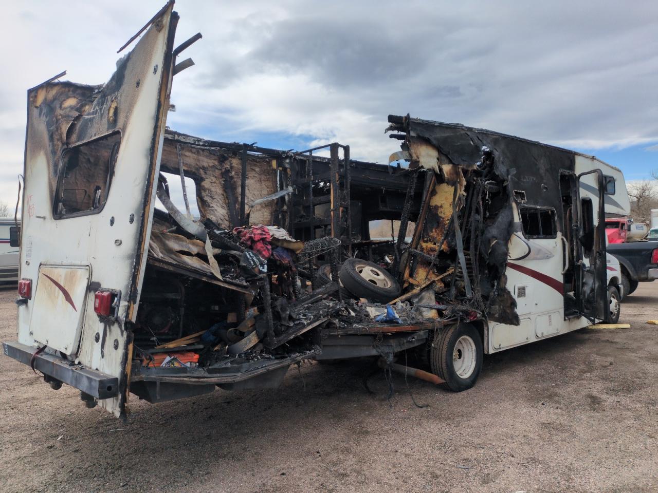 PoorThis is a 2009 COACH MOTORHOME. The primary damage is burn damage, and the secondary damage is none. The car's color is white, and the start code is DEFAULT. The motorhome has sustained severe burn damage throughout the body, with the interior also heavily affected. The wheels are present, and the lights and glasses are significantly damaged due to the fire. The interior is completely charred and destroyed. Airbags are likely deployed or damaged due to the fire. This RV requires significant repairs and is not drivable.