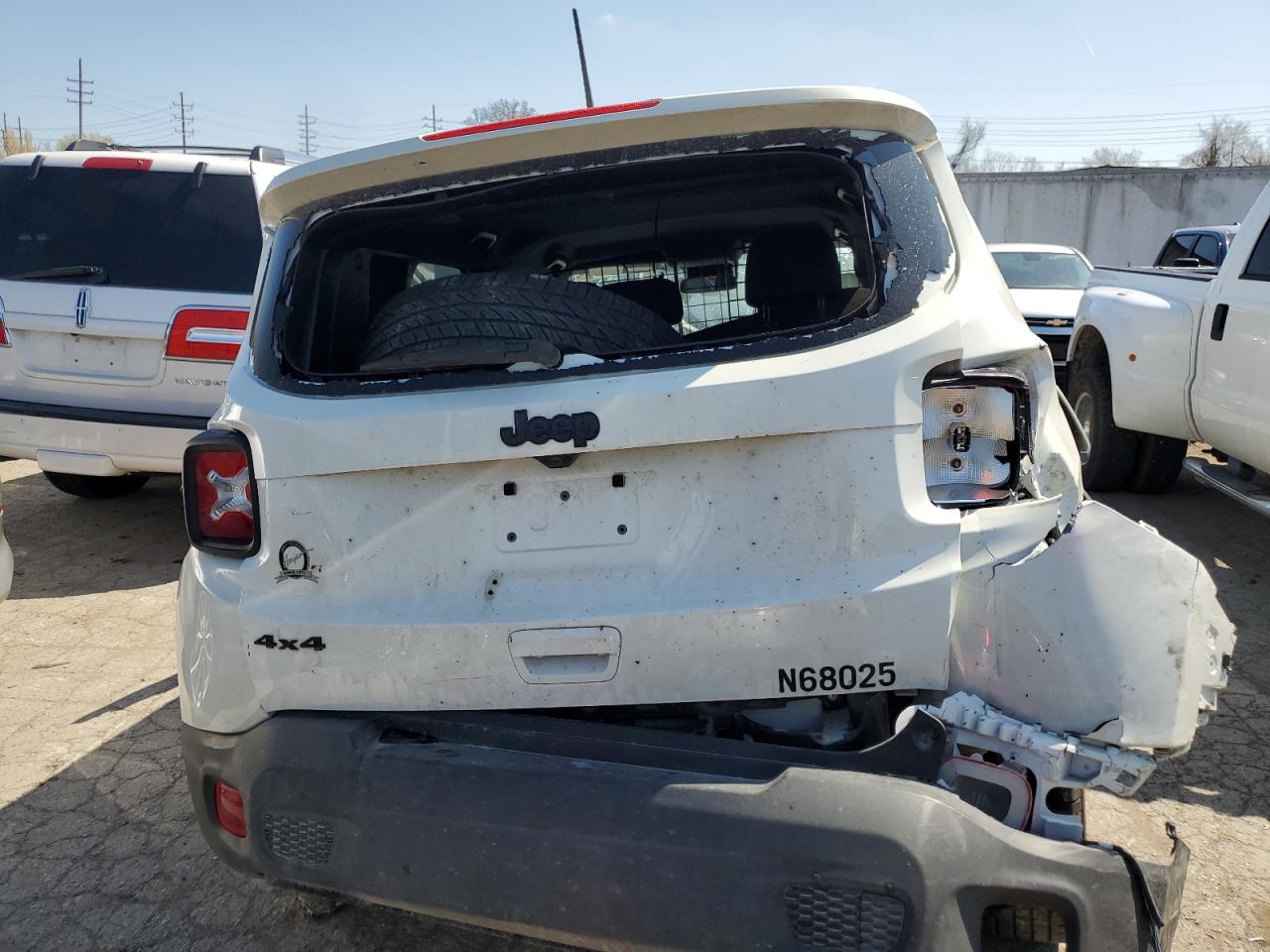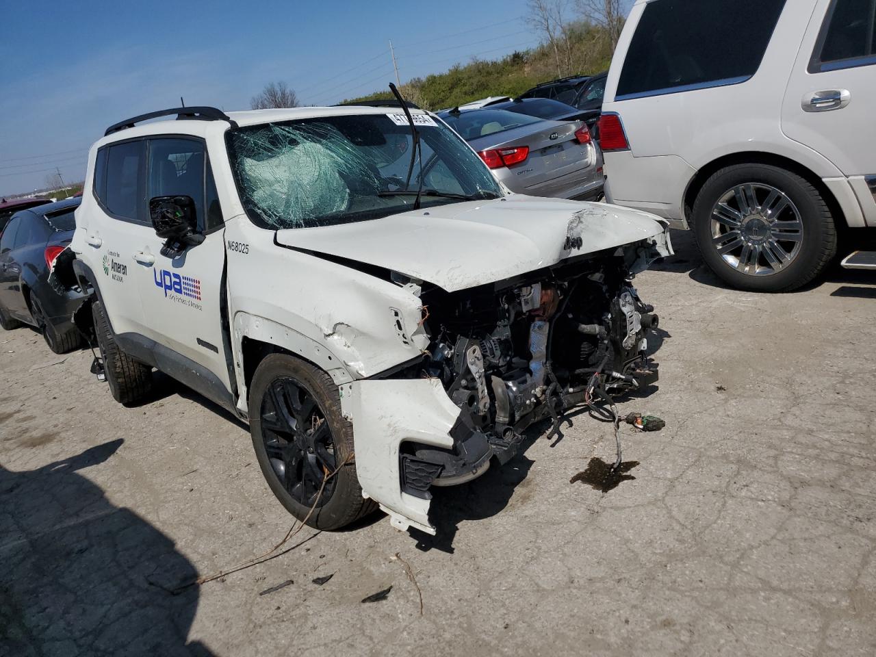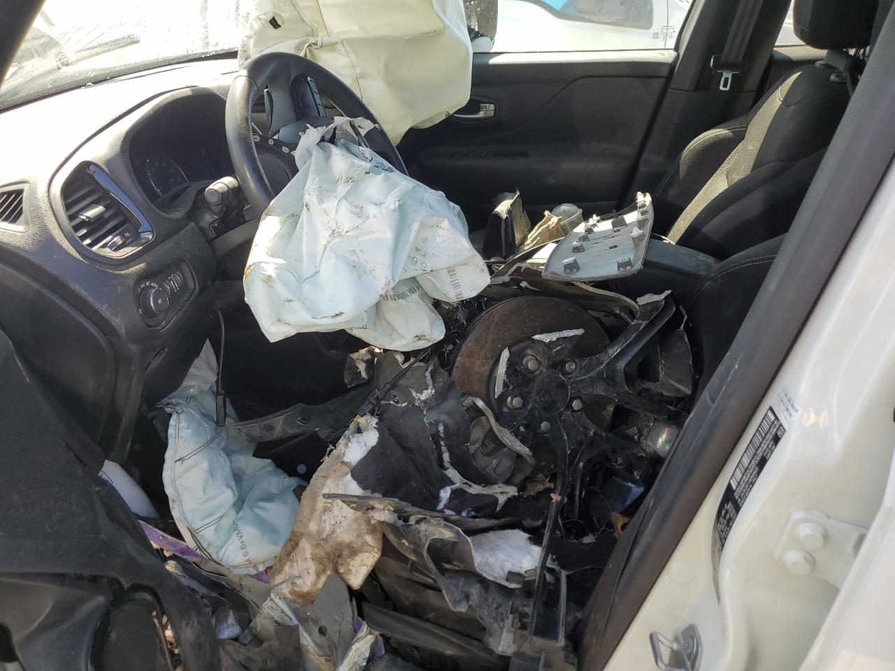 PoorThis is a heavily damaged white 2022 Jeep Renegade. The vehicle has sustained significant damage to the front end, sides, and rear, with major body panel deformation. The undercarriage is the primary damage, with no secondary damages. The interior shows signs of airbag deployment and extensive damage throughout.