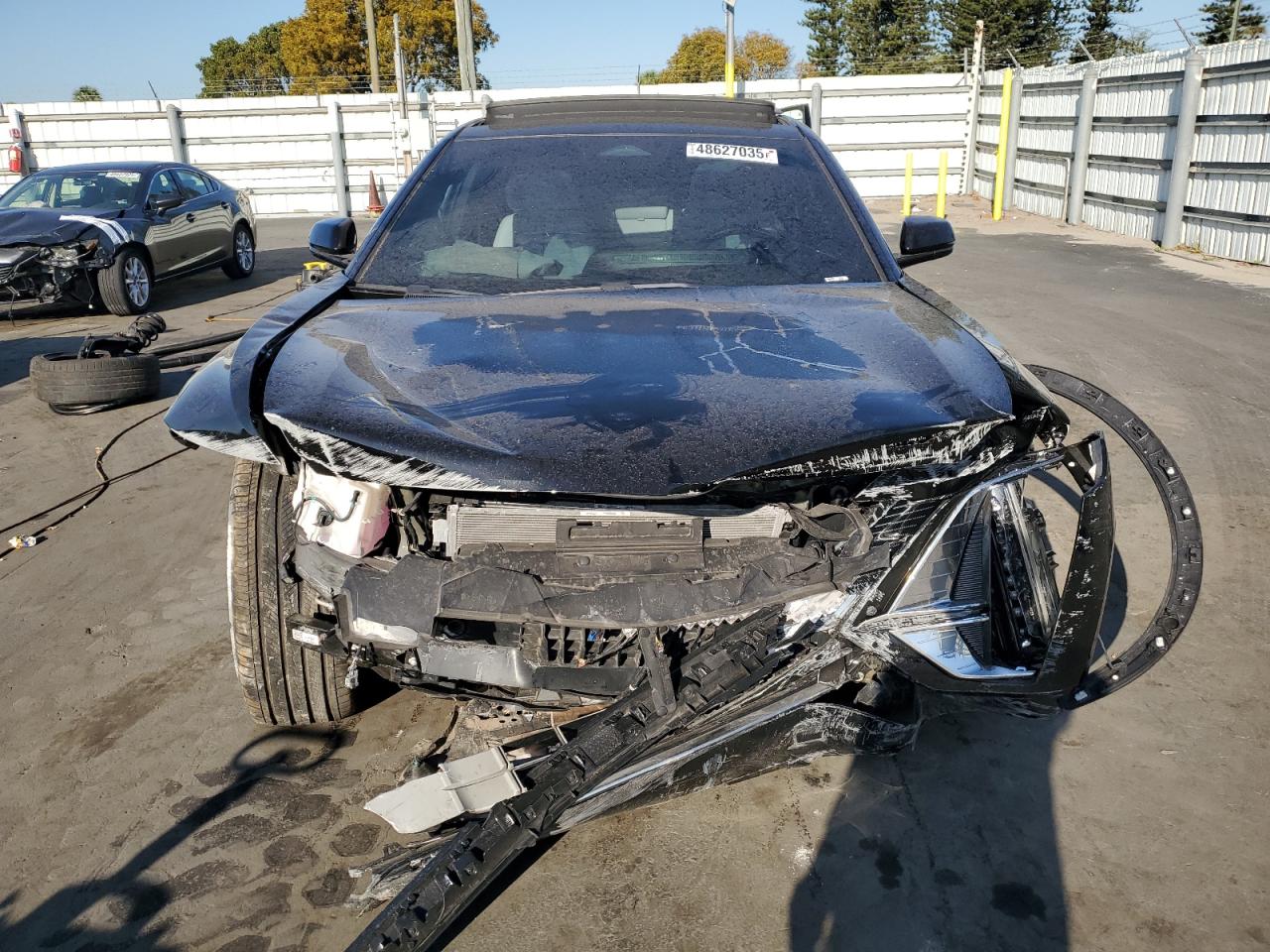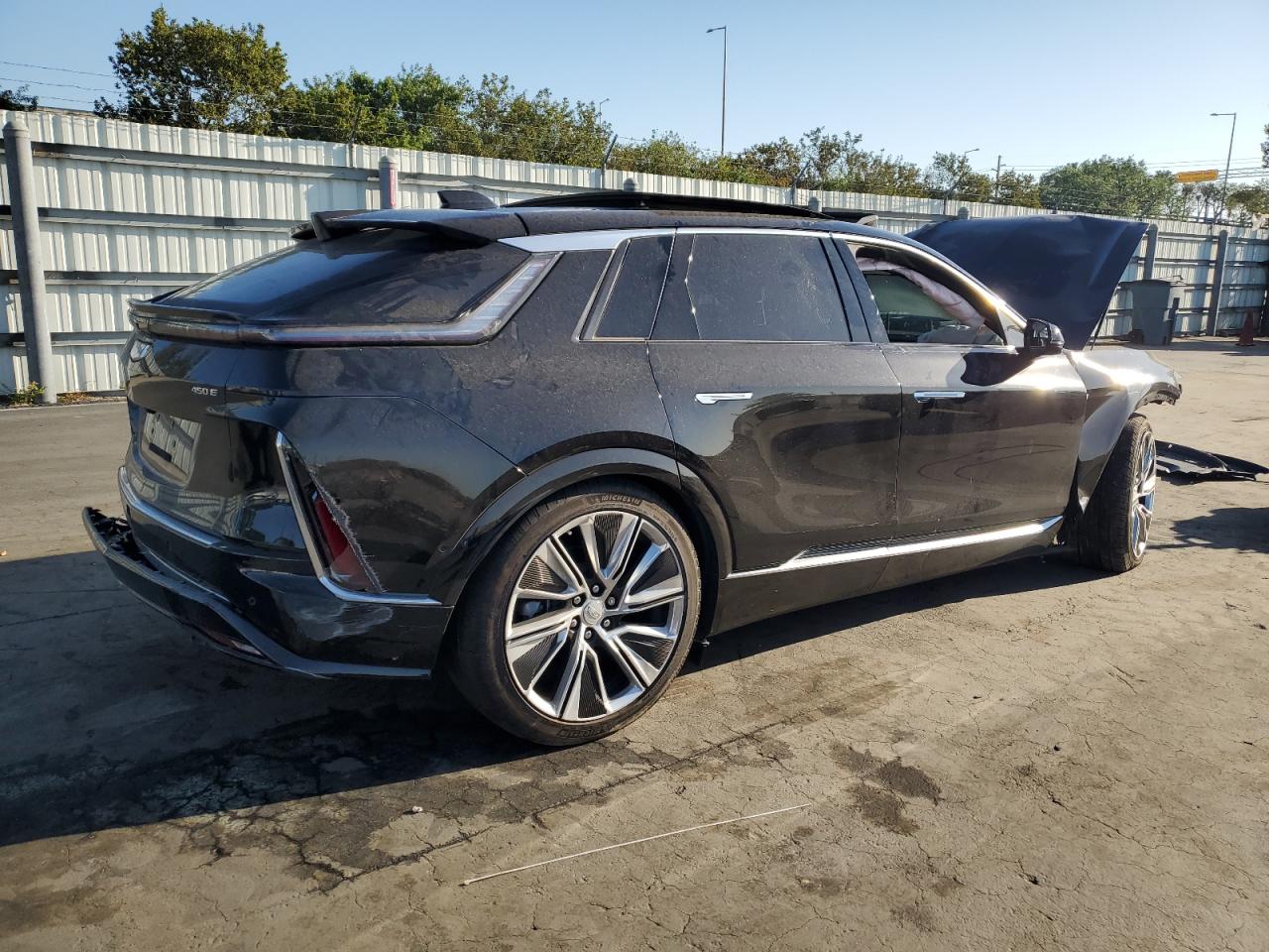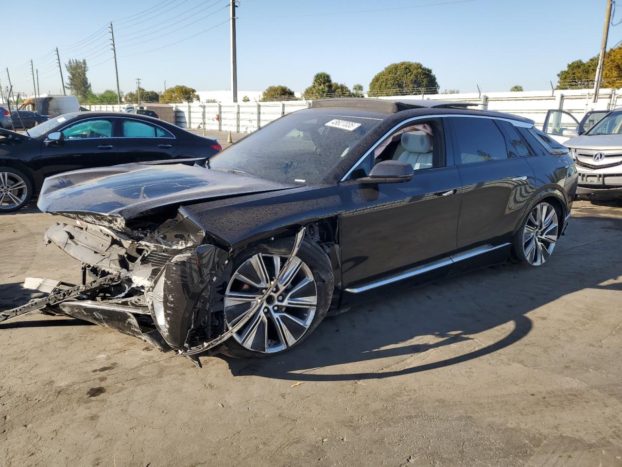 PoorThe CADILLAC LYRIQ LUXU 2024 is black and shows significant damage. The front end has major damage, with the hood, bumper, and front panels severely impacted. The rear end also exhibits damage. The wheels appear intact, but the lights and glasses have damage. The interior shows deployed airbags and visible damage, suggesting a significant impact. The car is likely not drivable.