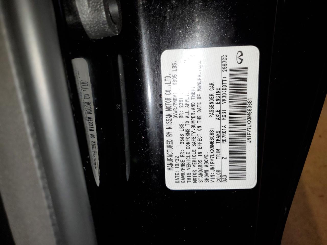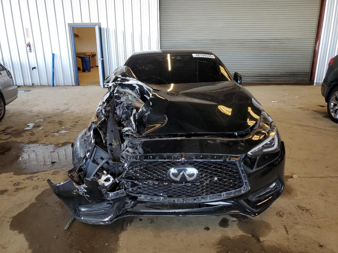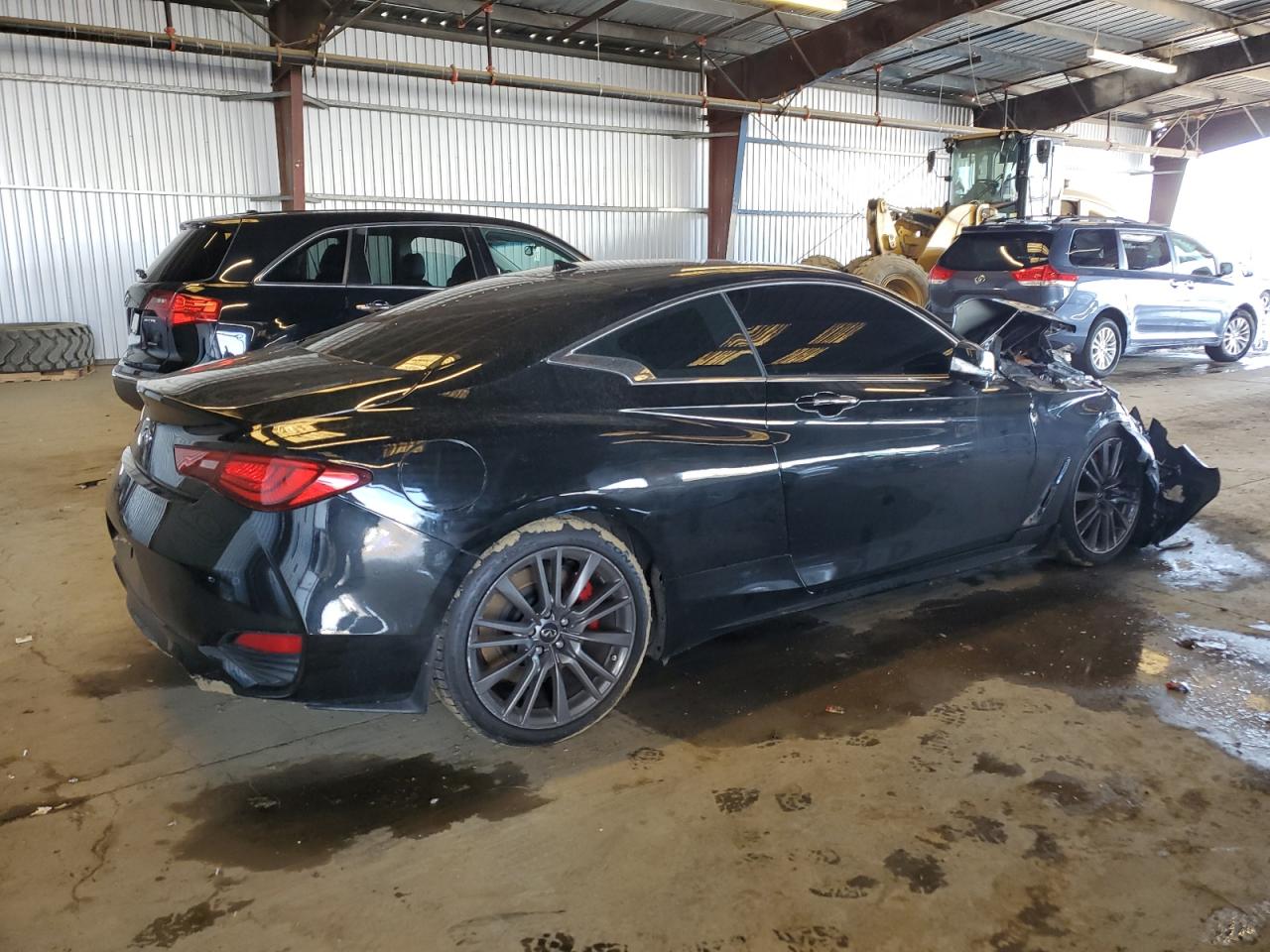 FairThe 2022 INFINITI Q60 RED SP is a black coupe, that has suffered significant front-end damage. The front end of the vehicle is heavily damaged, including the hood, bumper, headlights, and grille. The airbags have deployed. The interior shows damage, with deployed airbags and signs of impact. The car is not drivable.