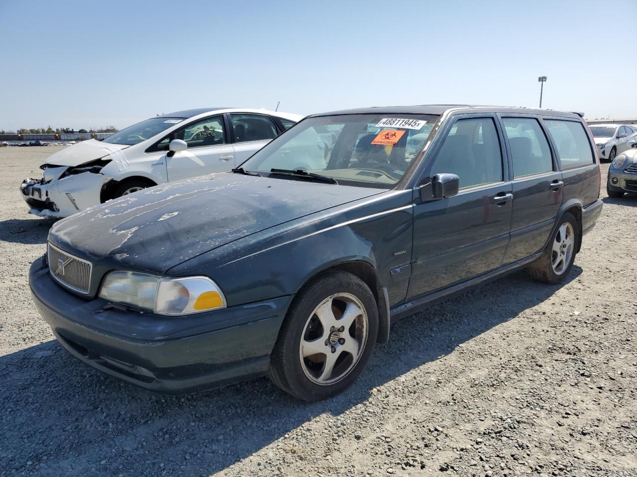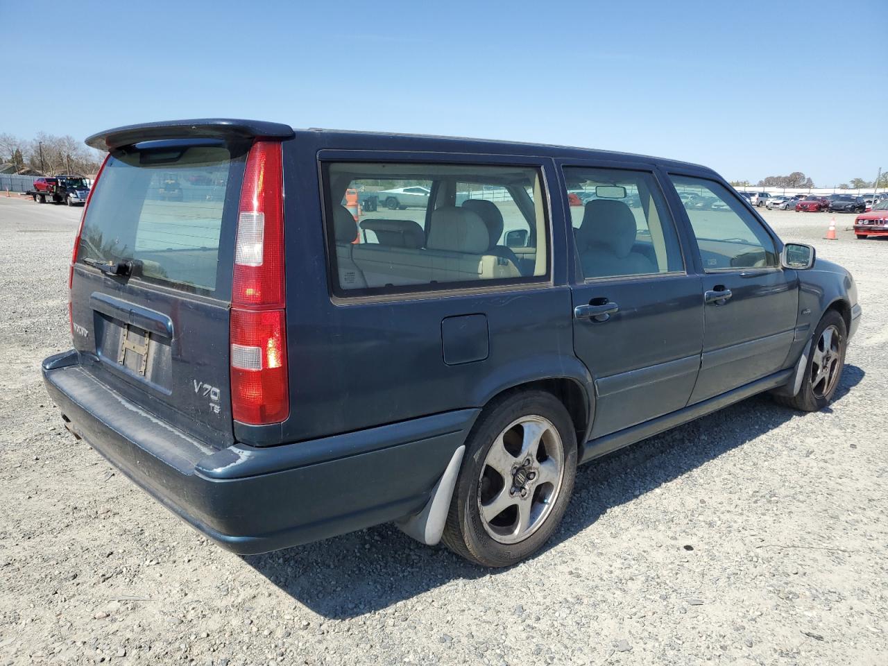 Fair1998 VOLVO V70 T5 TUR in blue. Showing minor dents and scratches, with no significant secondary damage. Wheels and lights appear to be in acceptable condition. The glasses seems fine but can have some minor scratches. Inside the car looks to have some wear and tear. The car's airbag status is unknown. The car itself could be a great project car for someone looking to restore a classic station wagon. The engine condition is unknown.
