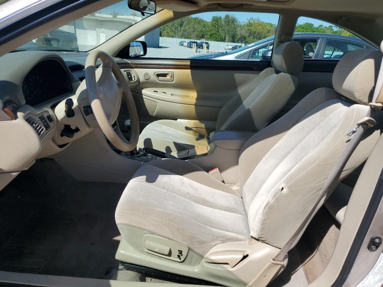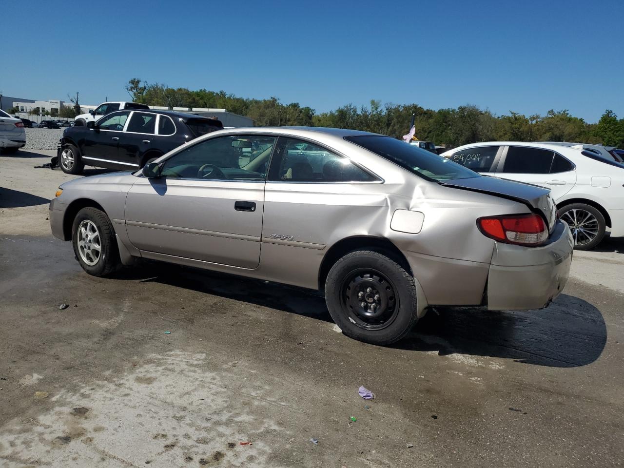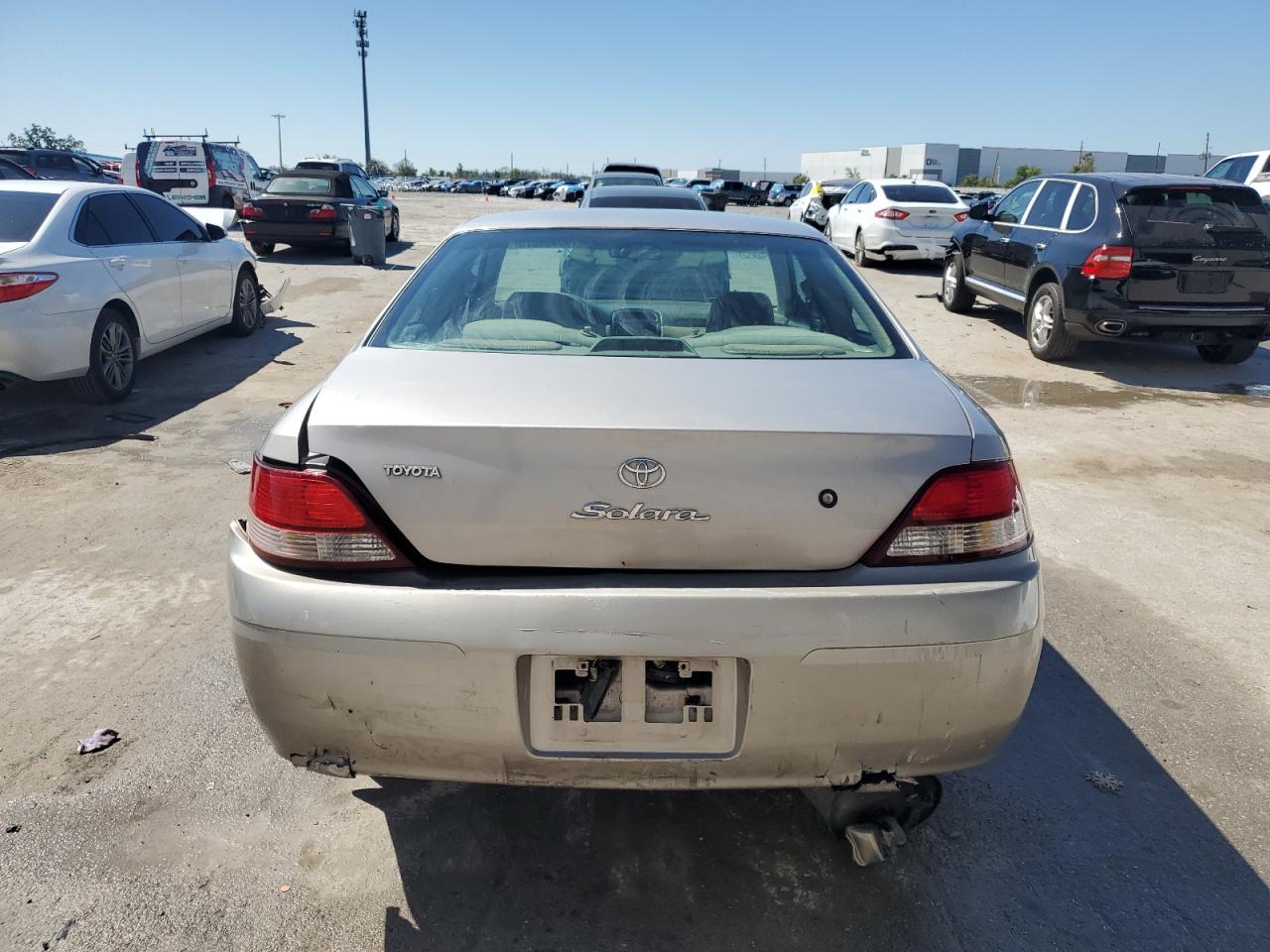 FairThis is a 1999 Toyota Camry Solara with significant rear-end damage and damage to the undercarriage. The car is tan. The rear end shows signs of impact, and there is visible damage to the body panels. The interior shows wear and tear consistent with its age and mileage. The wheels and lights appear to be intact. The car's condition suggests it requires considerable repair to be drivable.