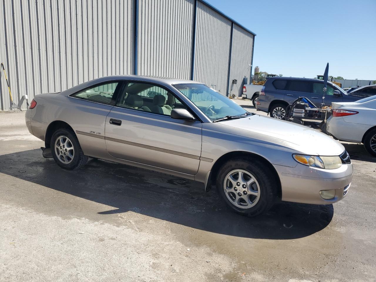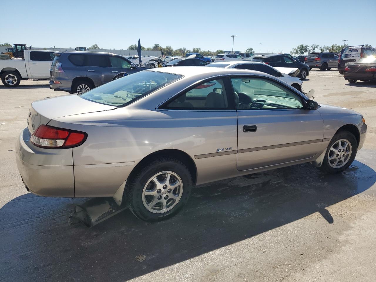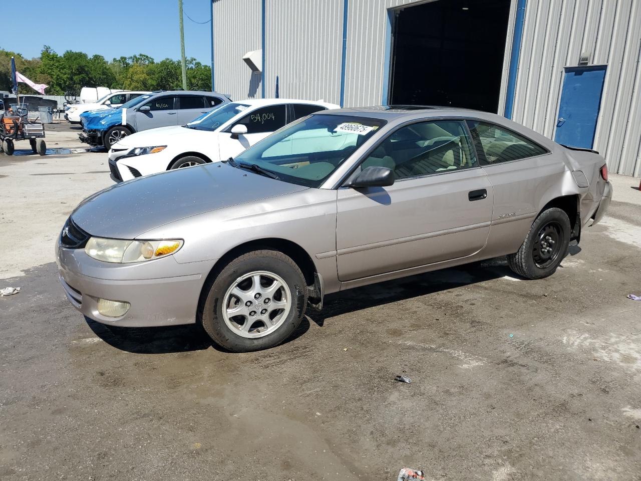 FairThis is a 1999 Toyota Camry Solara with significant rear-end damage and damage to the undercarriage. The car is tan. The rear end shows signs of impact, and there is visible damage to the body panels. The interior shows wear and tear consistent with its age and mileage. The wheels and lights appear to be intact. The car's condition suggests it requires considerable repair to be drivable.