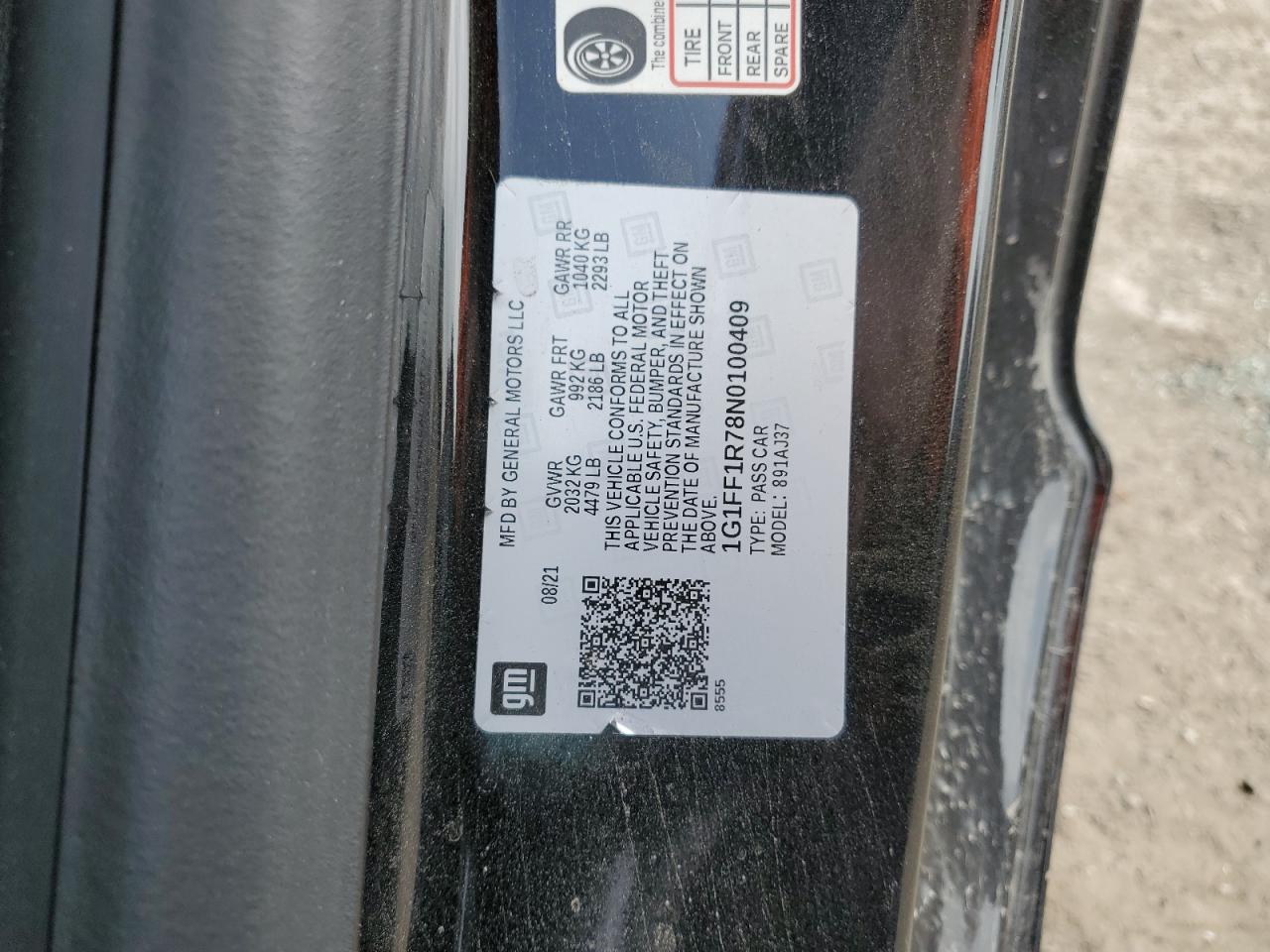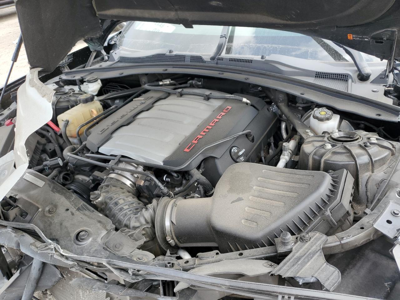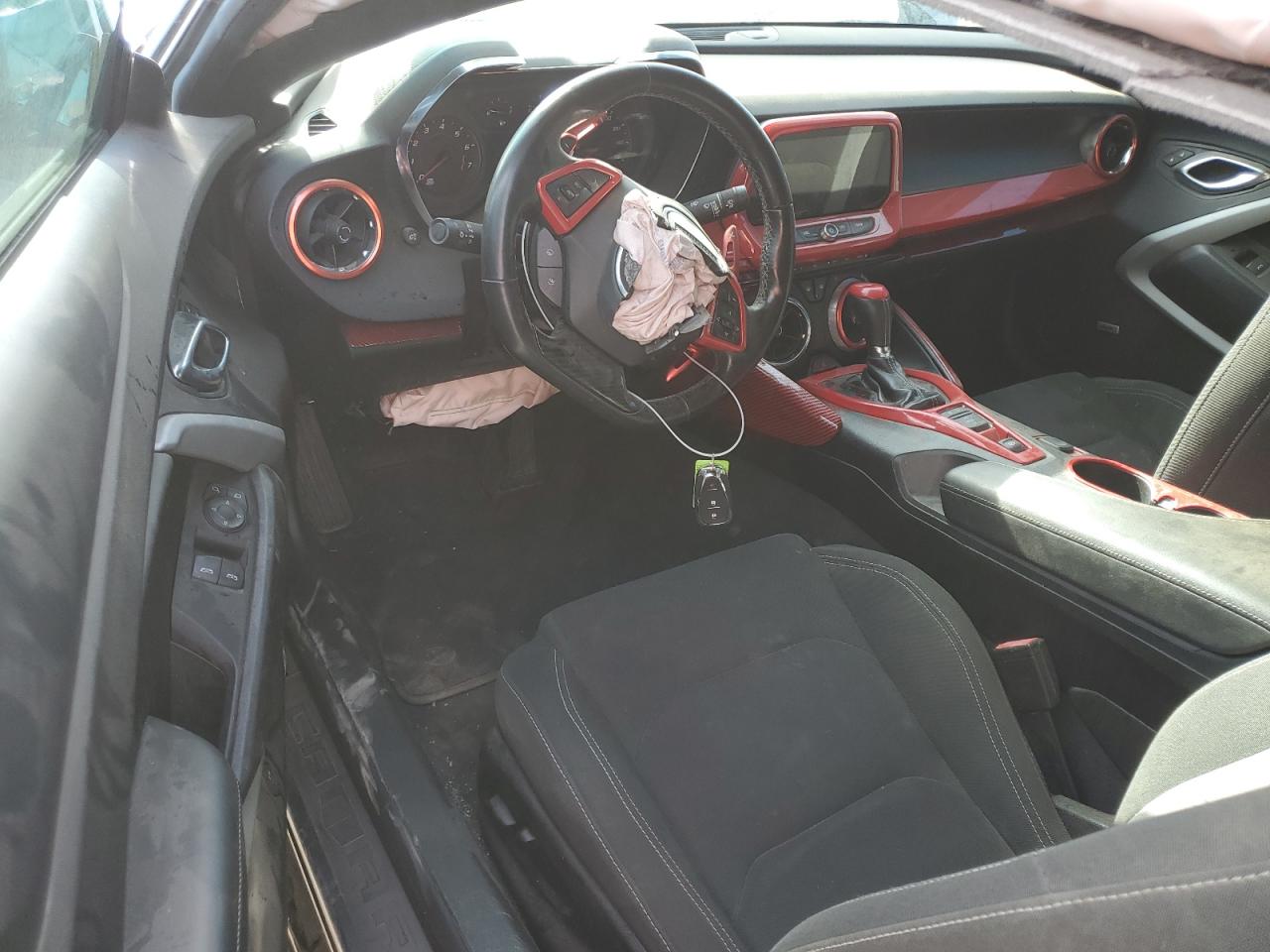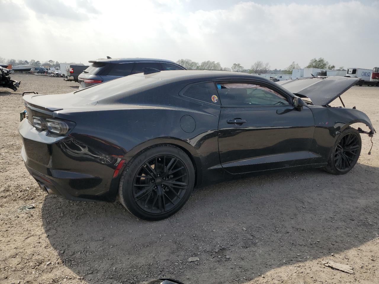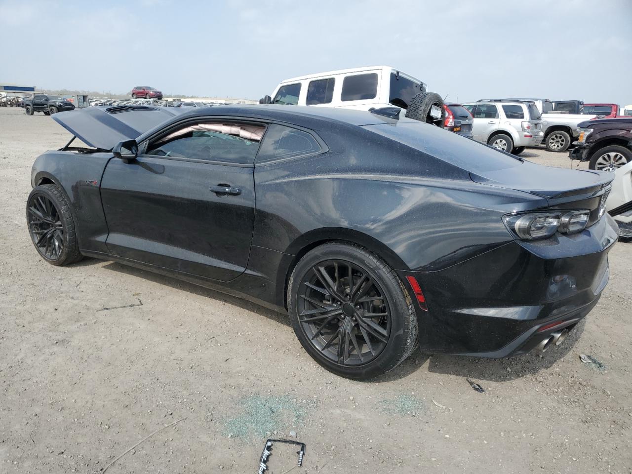 FairThe 2022 Chevrolet Camaro LT1 is a black muscle car. The vehicle sustained significant front-end damage, including a heavily damaged front fascia, hood, and potential structural damage. The front lights are likely damaged. There are also minor dents and scratches present on the body. The interior shows signs of damage, potentially including deployed airbags and damage to the dashboard and steering wheel. Wheels are present. The vehicle requires considerable repair and is likely not drivable.