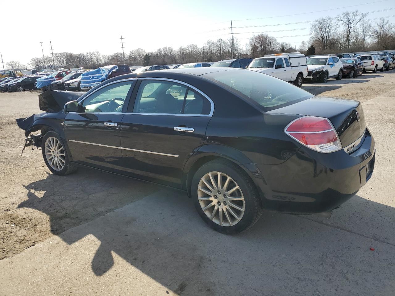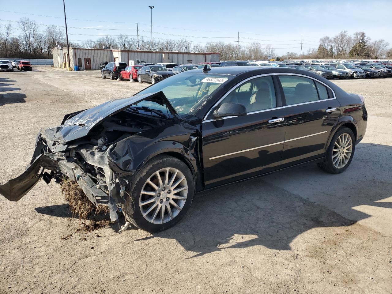 FairThe 2007 Saturn Aura XR in black has sustained significant front-end damage, impacting its exterior condition. The body panels are damaged, indicating a 'Body' damage category. Interior condition is good, with moderate wear and tear, including airbag deployed. The overall state of the vehicle is fair, requiring considerable repairs. The wheels and lights appear to be intact, but the front-end collision has caused major damage to the front section, body parts. The vehicle might be drivable after body repair.