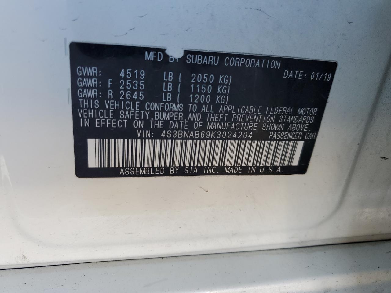 4S3BNAB69K3024204Final Bid