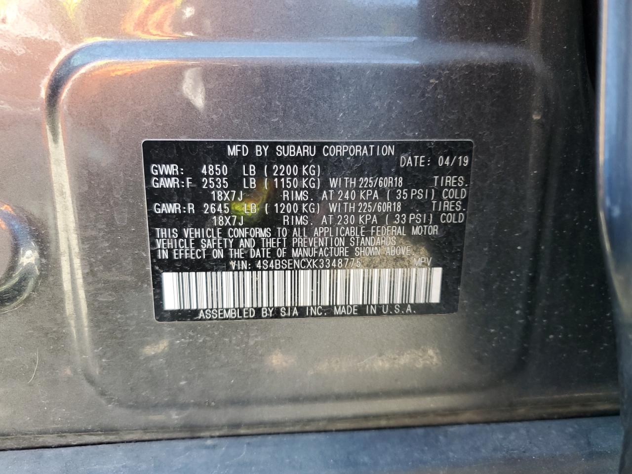 PoorThe 2019 Subaru Outback has sustained significant damage, indicating a rollover incident. The exterior exhibits extensive damage to the body panels, roof, and glass, with shattered windows and deformed sections. The wheels appear to be intact. The interior shows signs of damage, including deployed airbags and potential damage to the dashboard and other components. This Outback is in a poor state of repair and is likely not drivable.