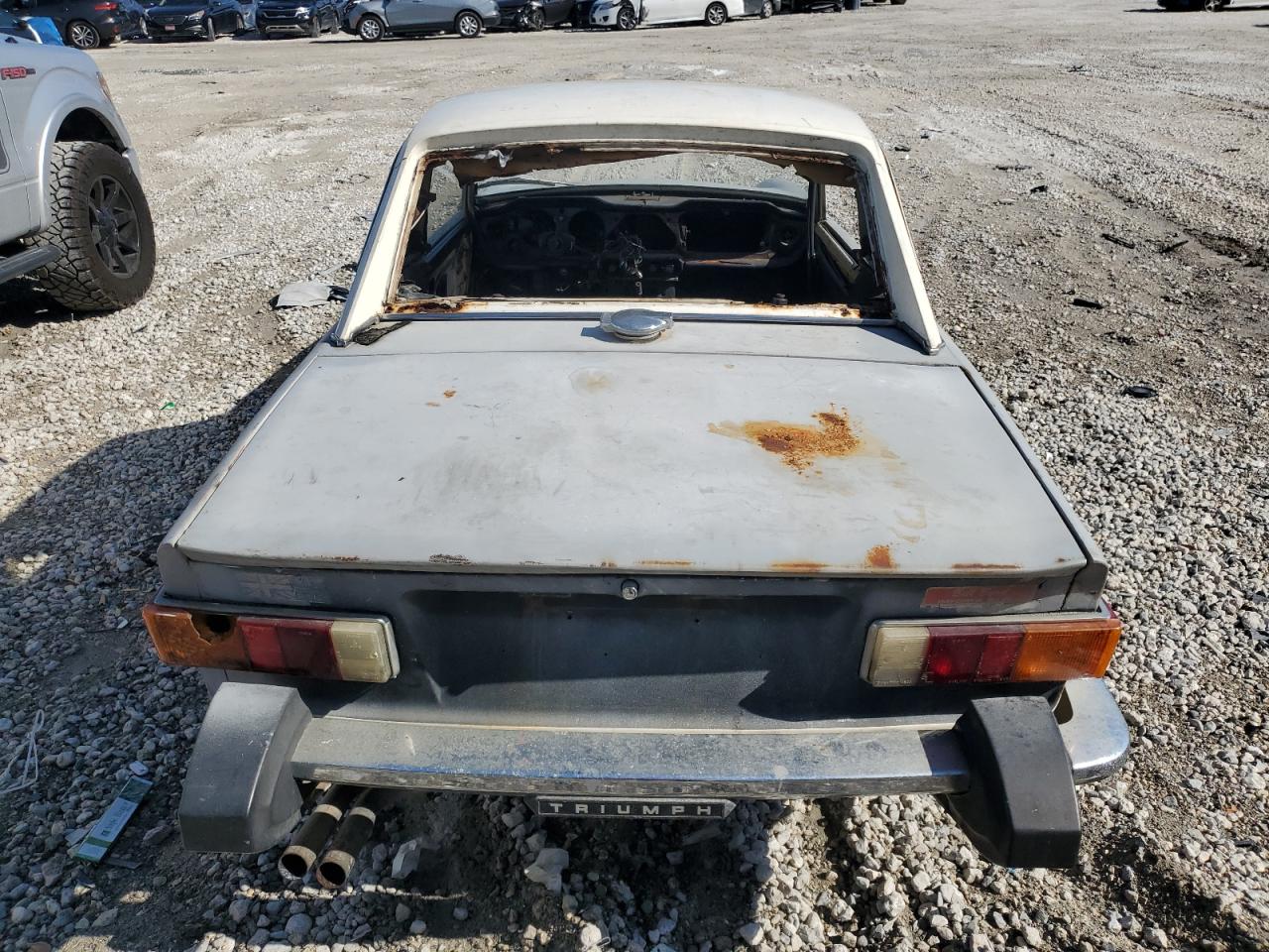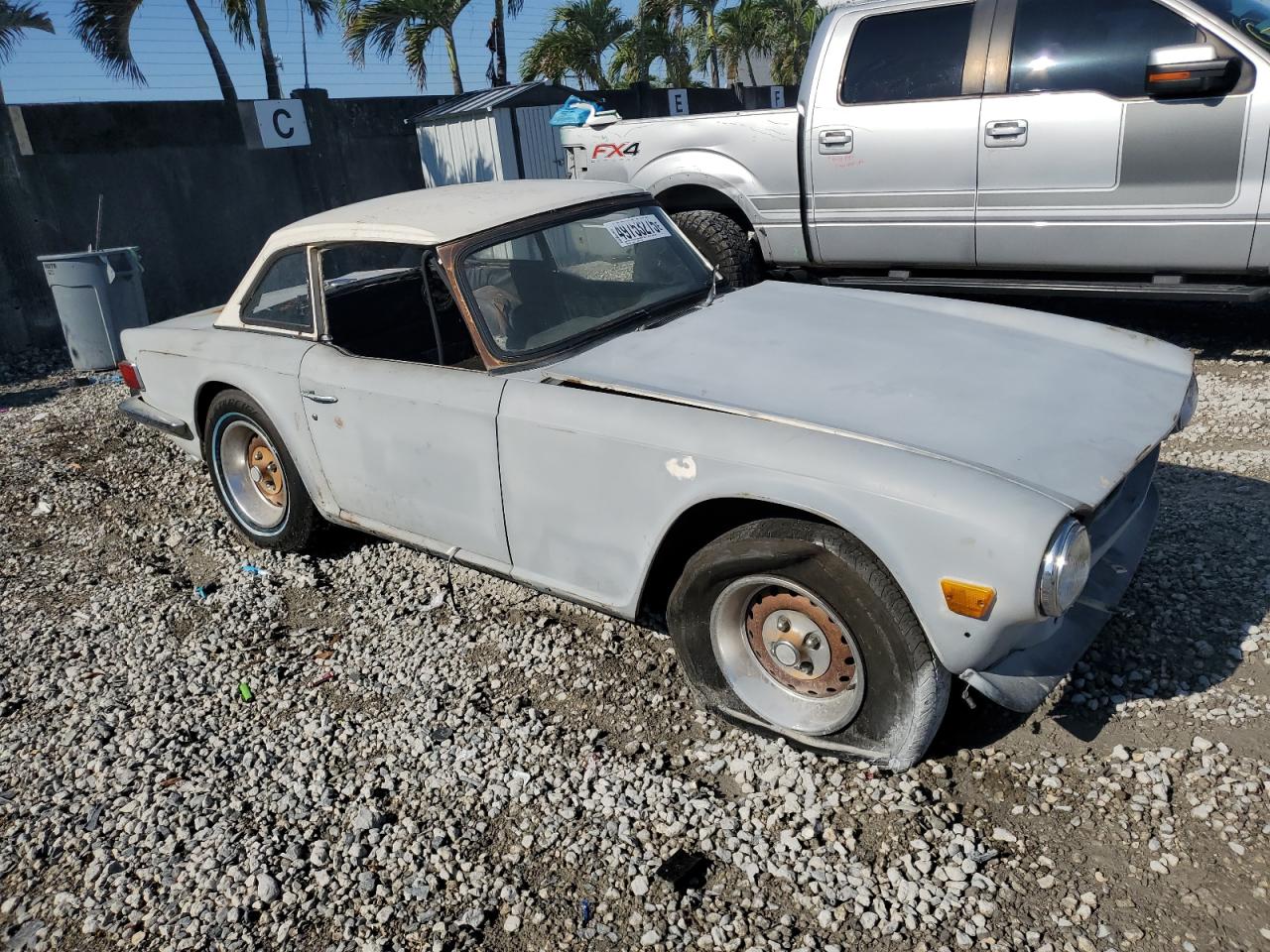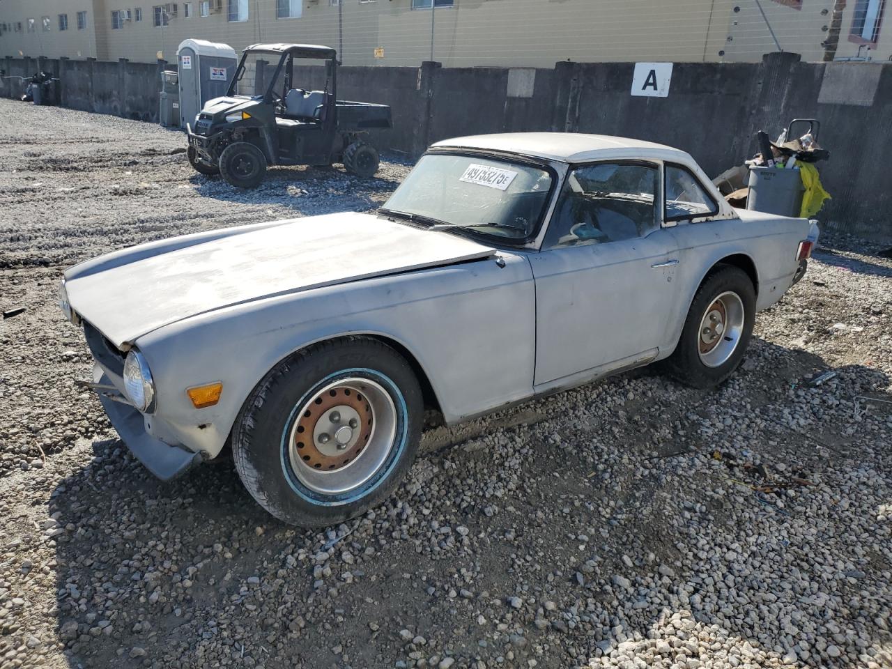 FairThe 1976 Triumph TR6, shown in multiple images, presents with significant damage, indicating a project car in need of extensive restoration. The exterior features cosmetic issues like scratches and dents, with body damage to several panels. The interior is severely damaged, with missing components and signs of deterioration. Wheel damage or engine damage is not visible on the pictures. This car is a prime candidate for restoration enthusiasts.
