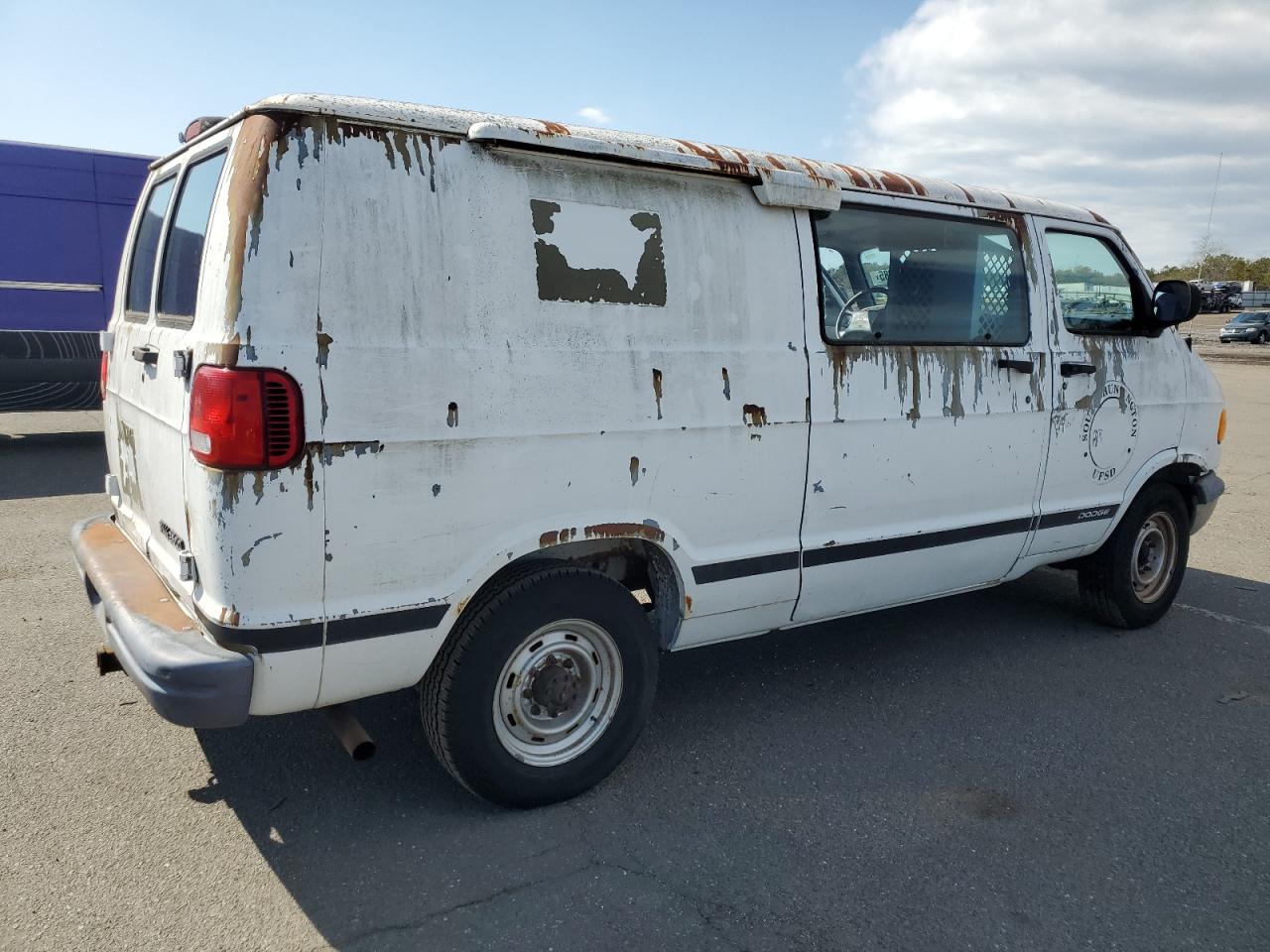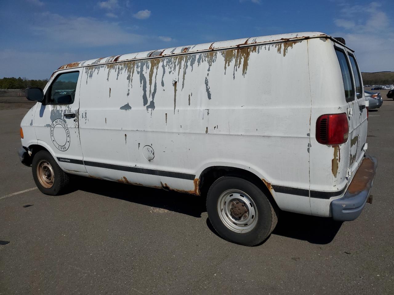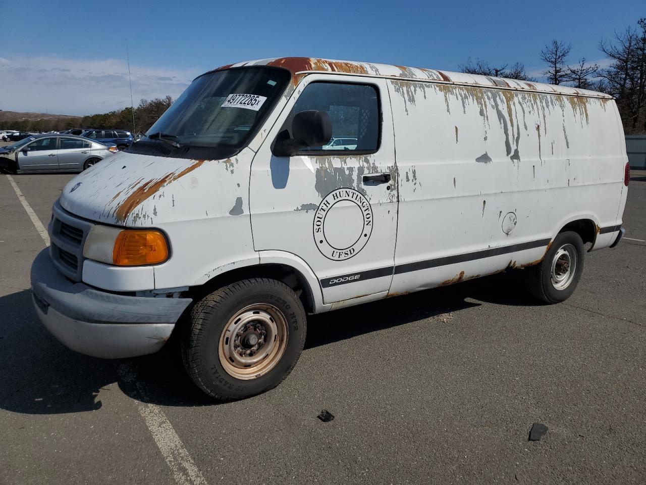 FairThis is a 2000 Dodge Ram Van B2 with visible damage. The primary damage is to the rear end, with secondary minor dents and scratches across the body. The exterior paint is white and shows significant wear, with areas of rust and paint loss. The wheels appear to be in fair condition. The lights and glass appear to be in fair condition. Interior shows signs of wear and tear. The car is drivable.