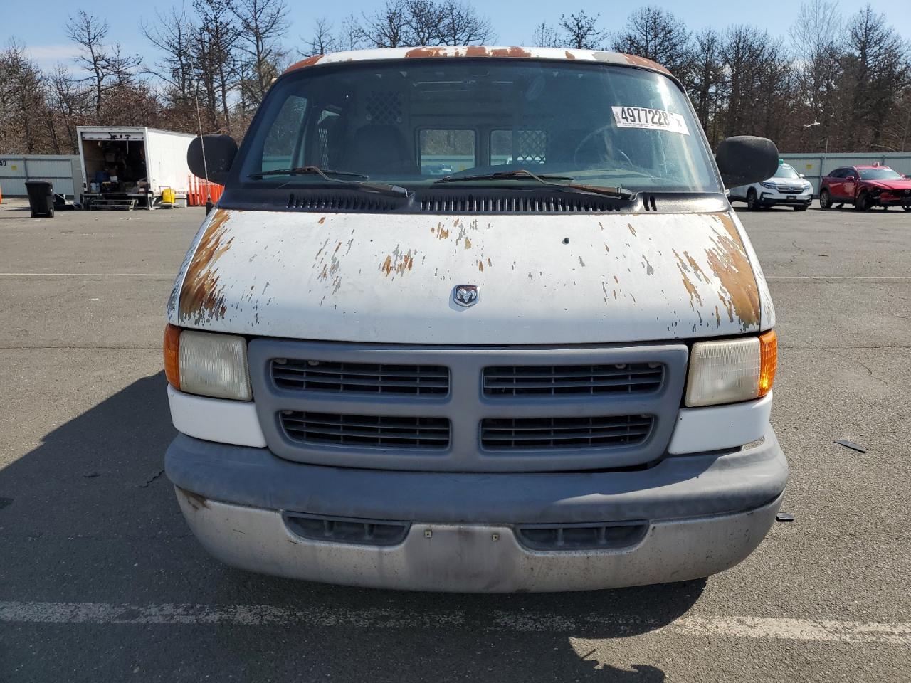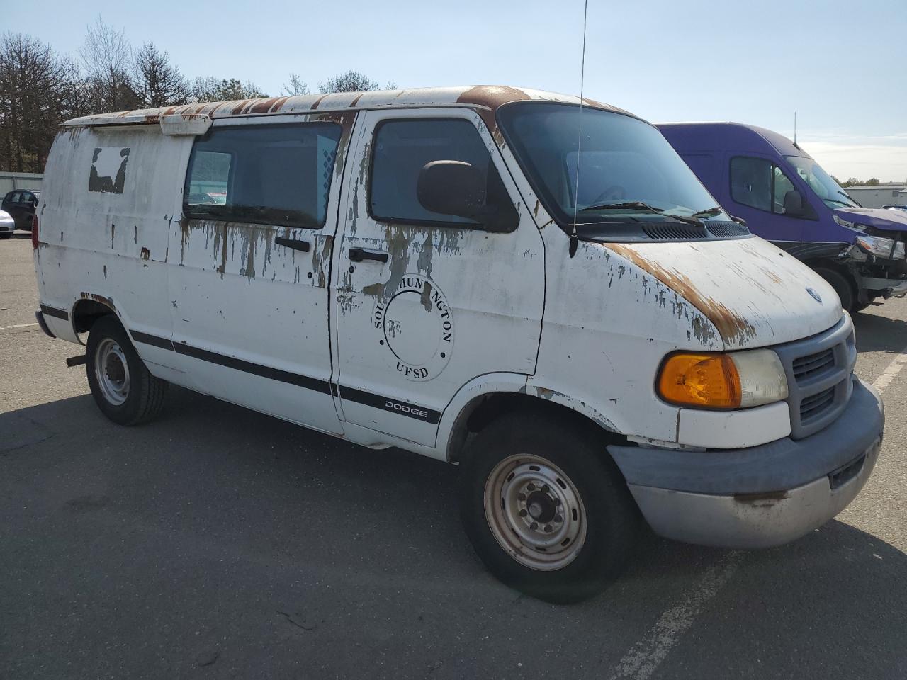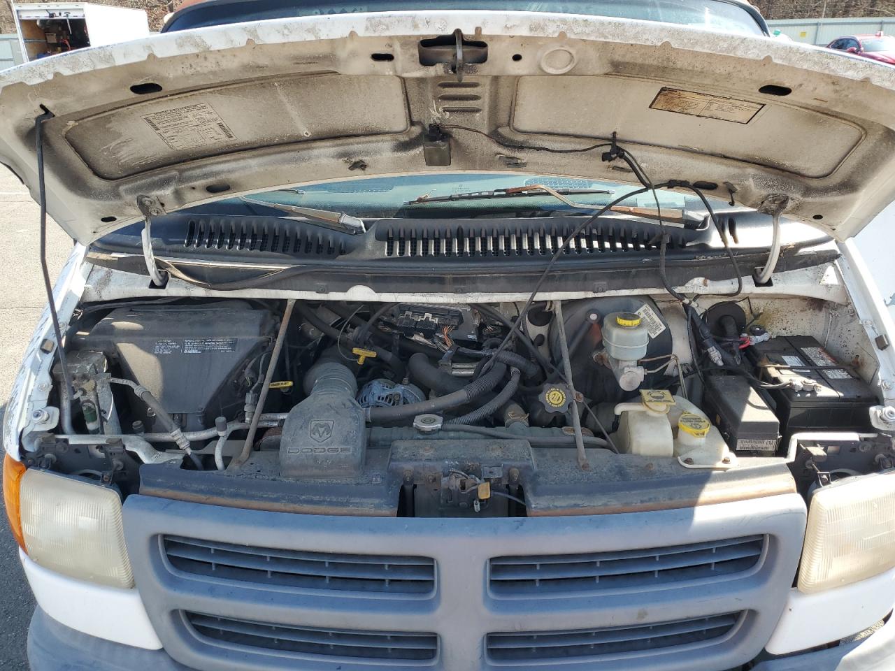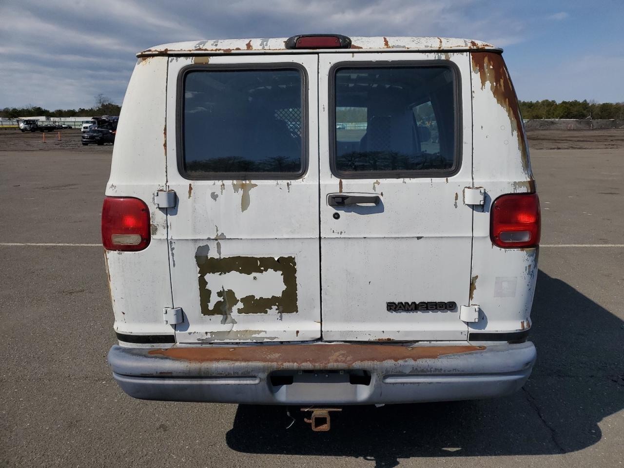 FairThis is a 2000 Dodge Ram Van B2 with visible damage. The primary damage is to the rear end, with secondary minor dents and scratches across the body. The exterior paint is white and shows significant wear, with areas of rust and paint loss. The wheels appear to be in fair condition. The lights and glass appear to be in fair condition. Interior shows signs of wear and tear. The car is drivable.
