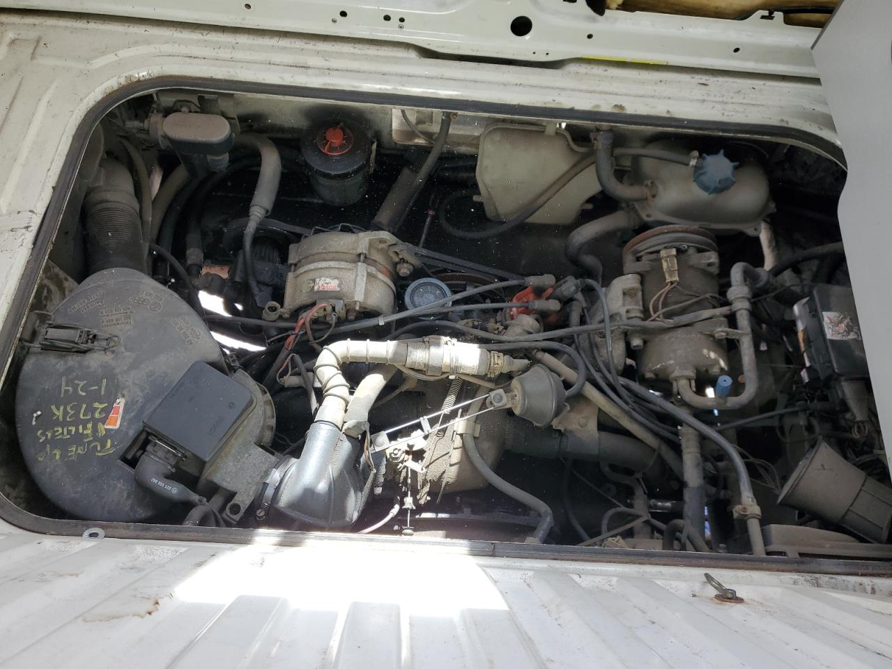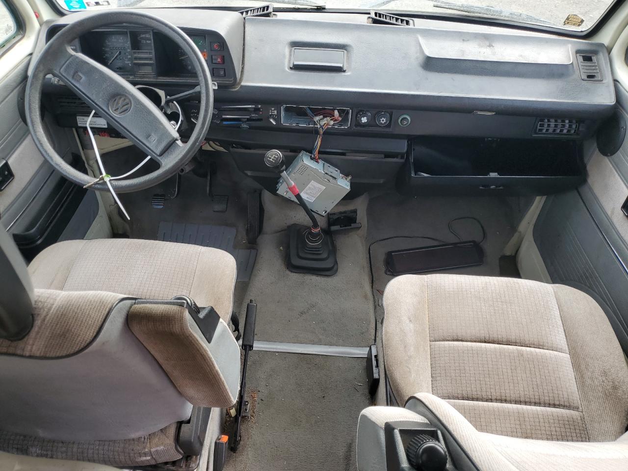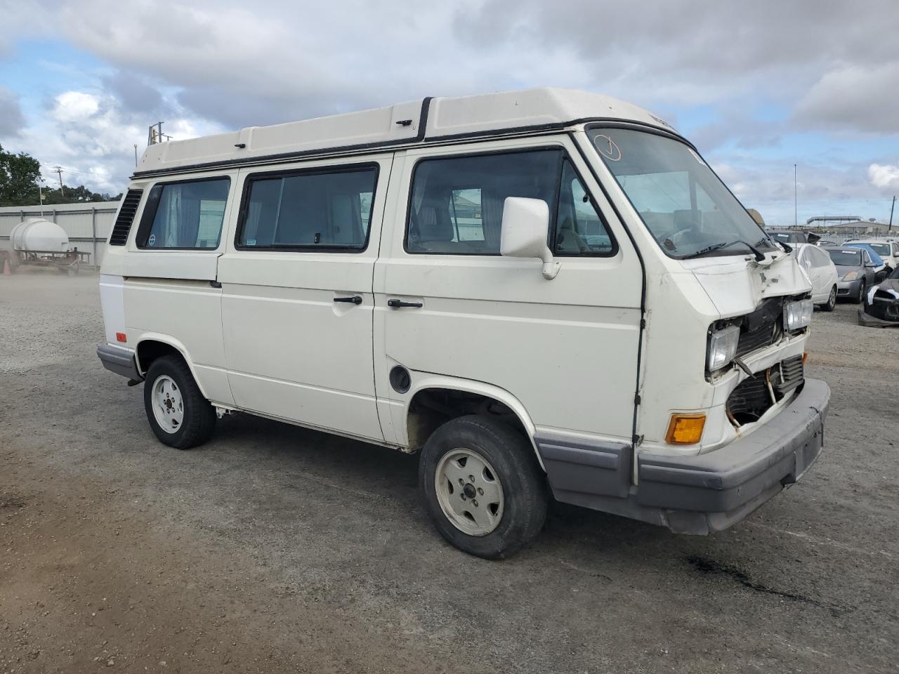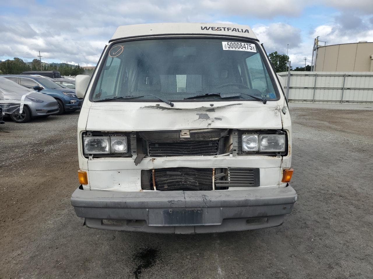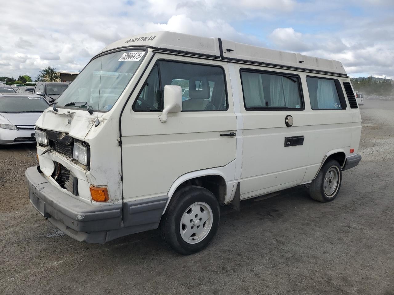 FairThe white 1990 Volkswagen Vanagon exhibits front-end damage. The vehicle starts, suggesting the engine is functional despite the impact. Visible damages include a damaged front end, and moderate wear across the body. Interior shows moderate wear and tear. The vehicle is drivable but requires repairs.