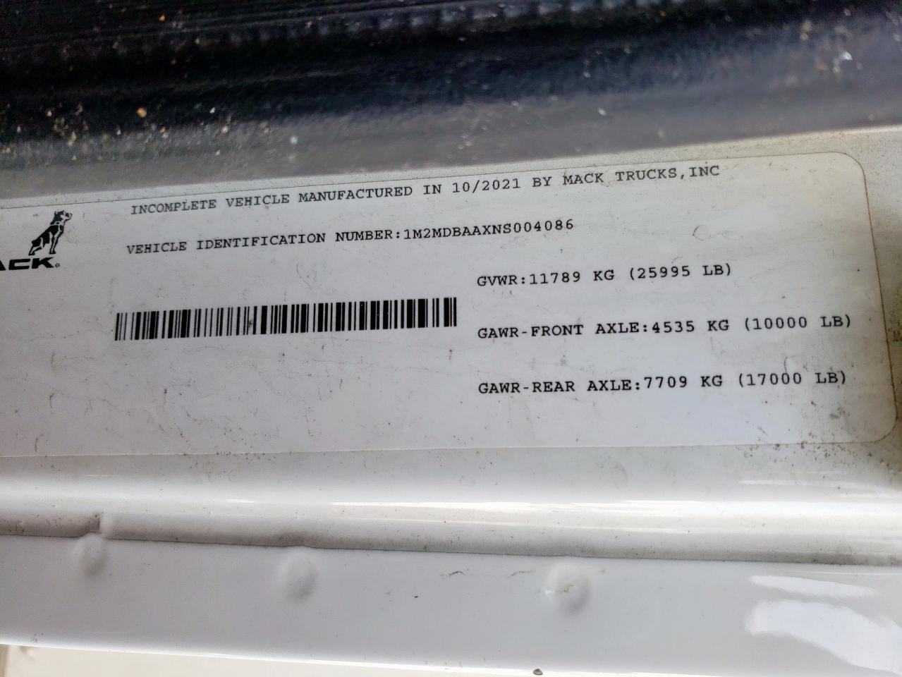 FairThe MACK MD 2022, white in color, shows signs of considerable wear and tear. The vehicle's primary damage is 'ALL OVER' with secondary 'ROLLOVER' damage. The engine starts, indicated by the 'Vehicle Starts' code. The exterior exhibits moderate damage to the body panels. The interior shows visible damage, suggesting a need for repair. The wheels appear to be functional. The lights and glasses show signs of damage. Interior damage includes possible damage to the interior panels and upholstery. The airbag condition is unknown.