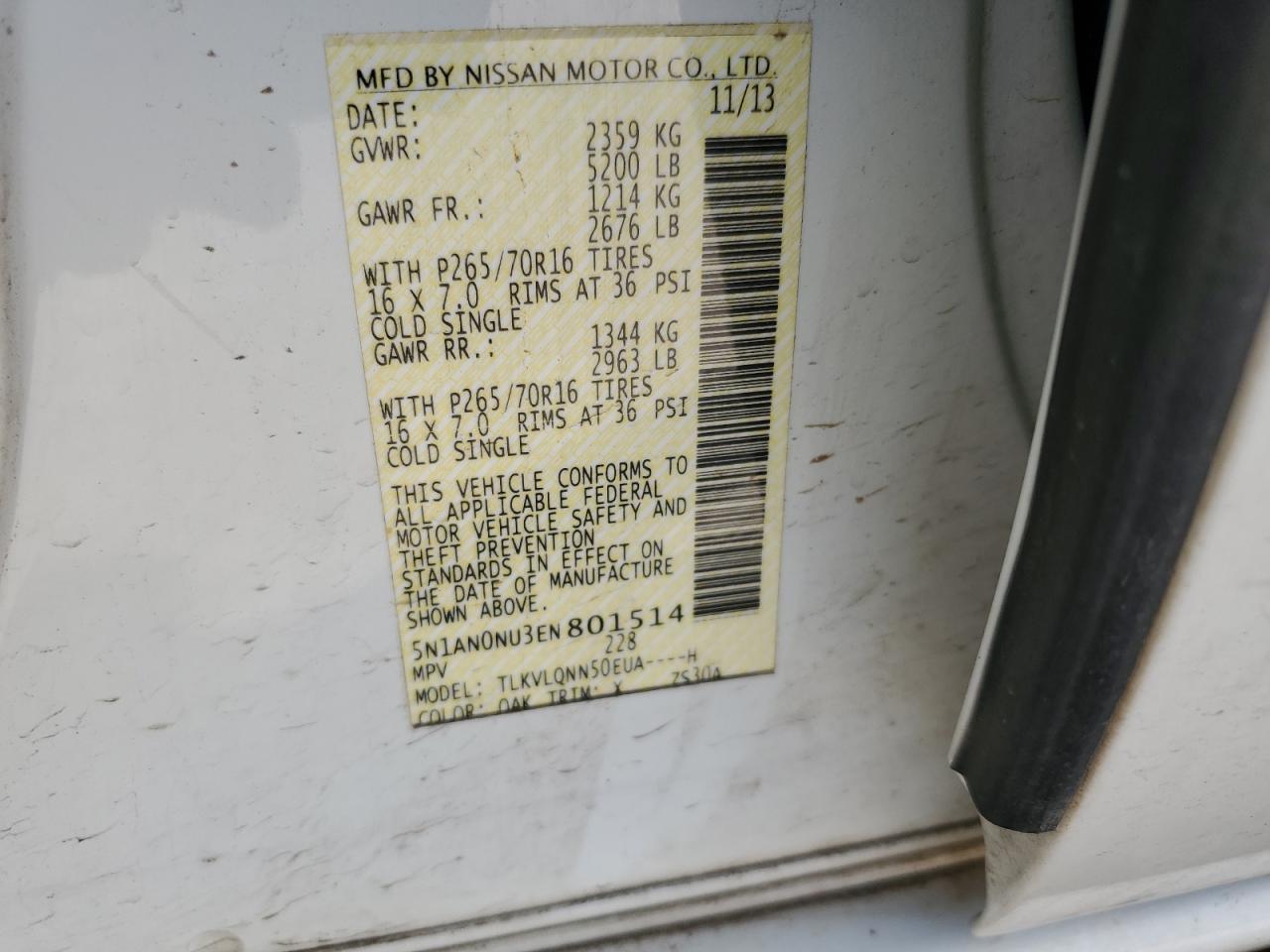 Fair2014 NISSAN XTERRA X, white in color, with front end damage and minor dents/scratches. The car is a Run & Drive Verified vehicle.