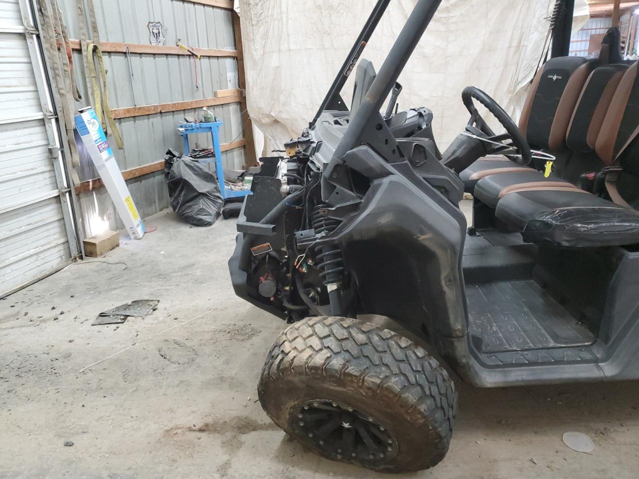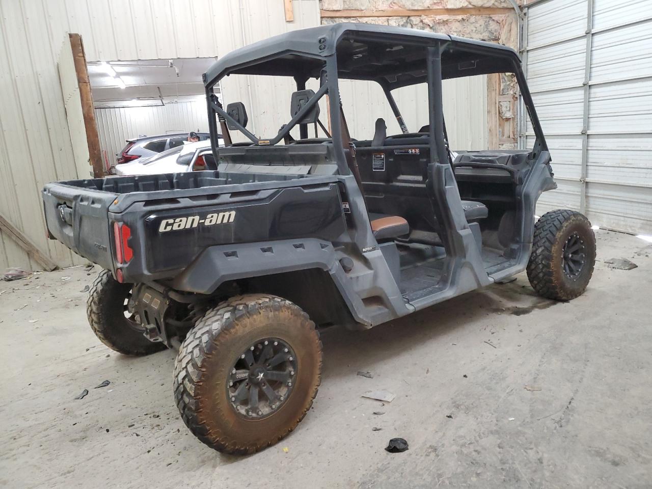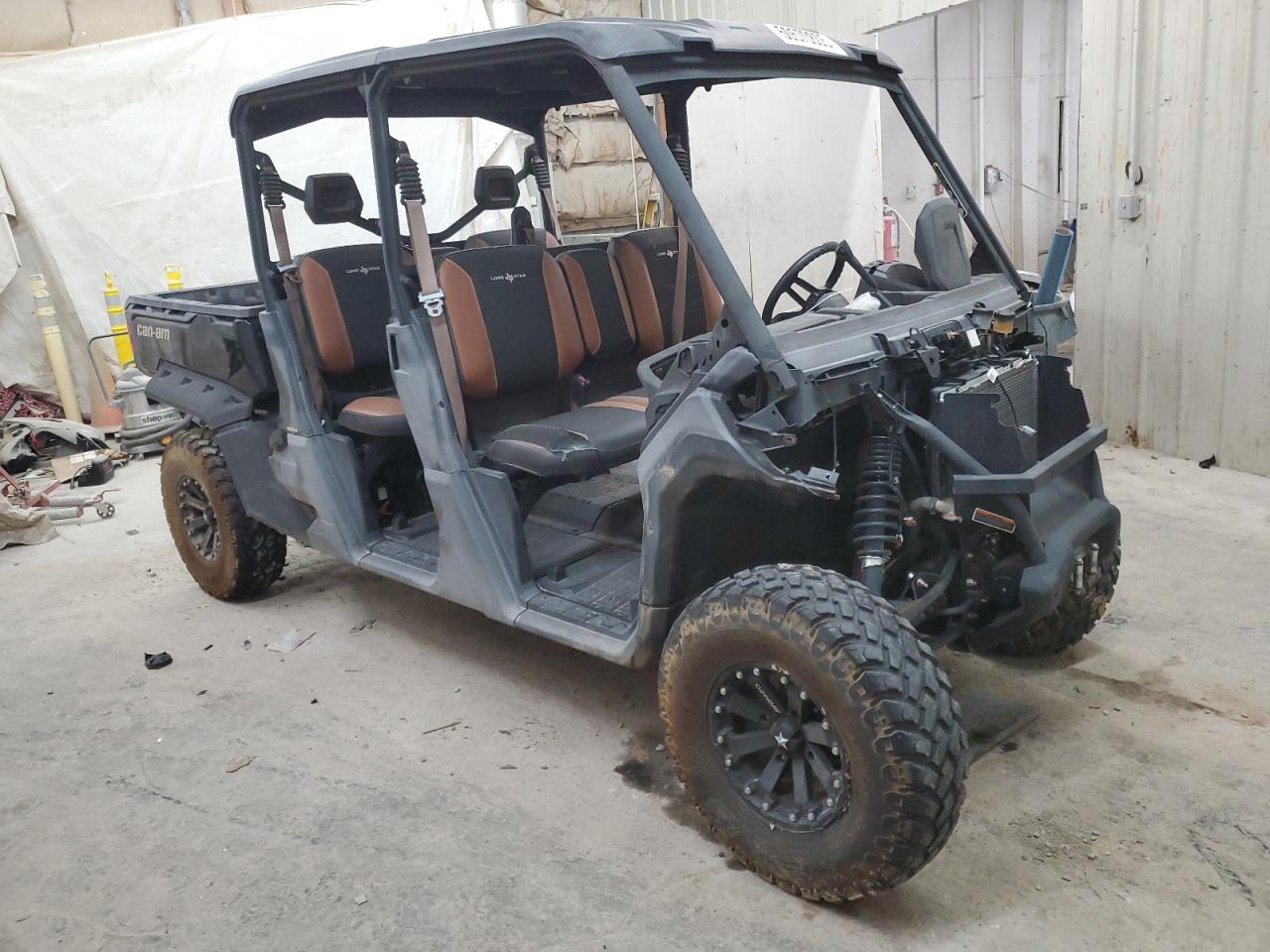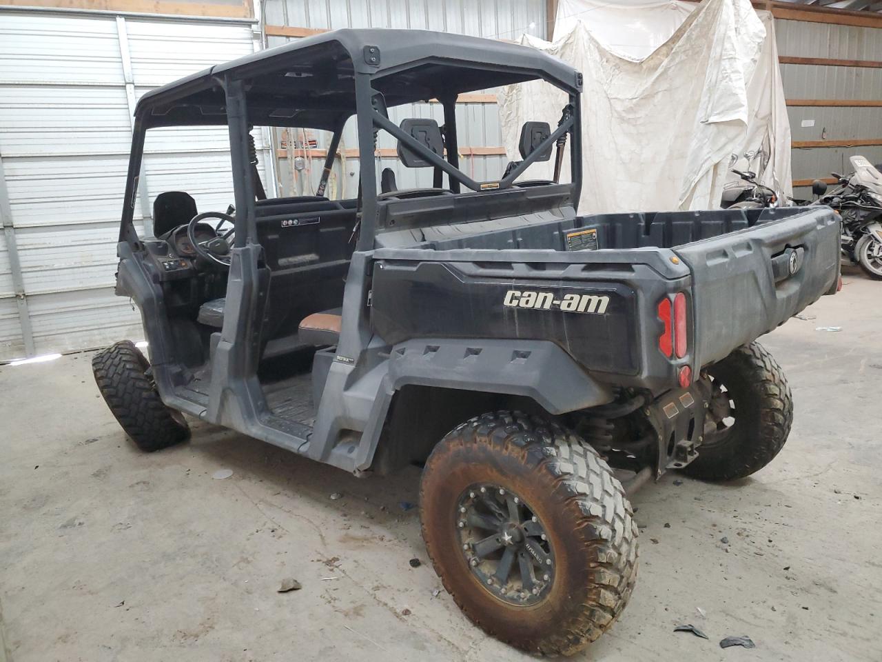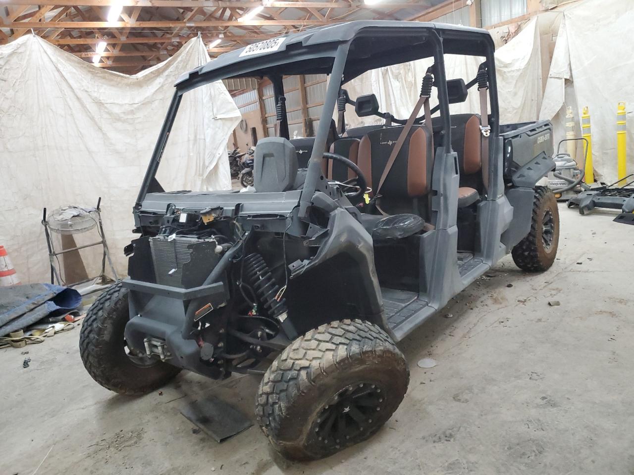 The CAN-AM DEFENDER M, 2018 model, exhibits rollover damage, predominantly affecting body components. The vehicle starts. It has damage. The overall condition suggests a need for significant repairs.