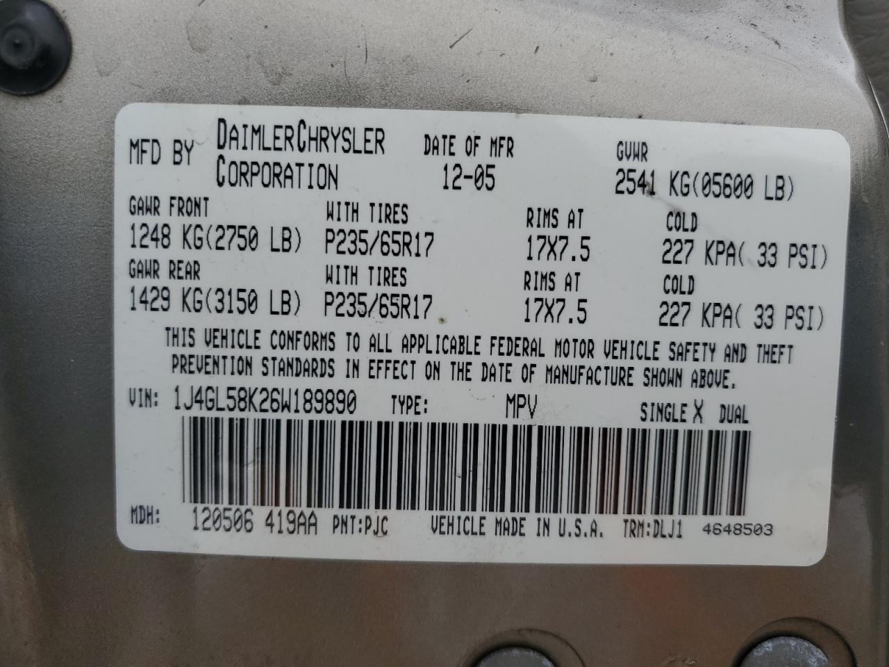 1J4GL58K26W189890Final Bid