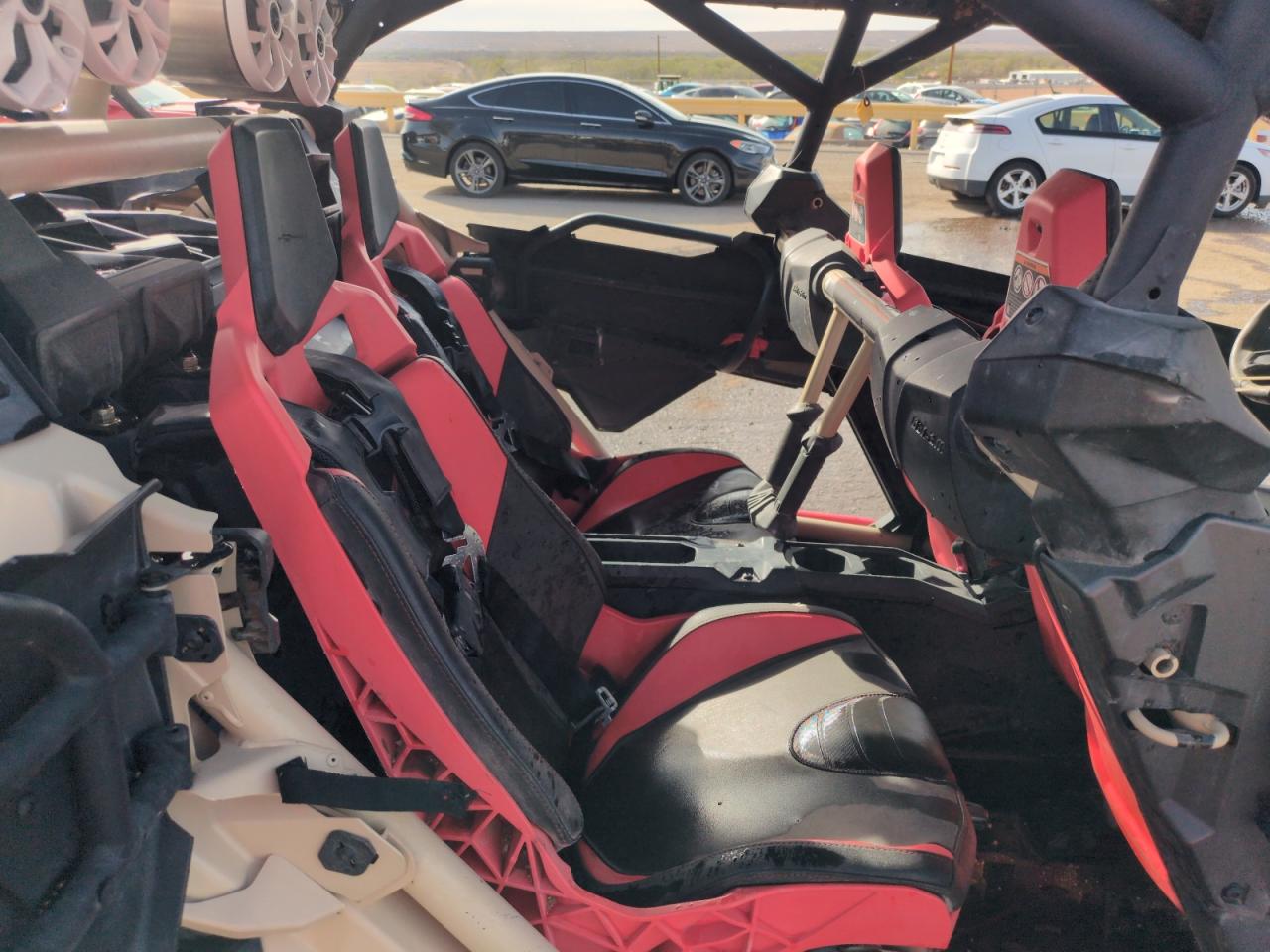 PoorThe Can-Am Maverick X3 MAX X RS 2021, is a two-tone off-road vehicle, it has suffered extensive damage. The primary damage is a rollover, and the vehicle starts. **Damage Analysis:** The exterior shows severe damage consistent with a rollover, including significant body panel damage, roof damage and structural distortion. The wheels appear to be intact despite the impact. The lights and glasses are likely damaged. **Interior and Mechanical:** The interior condition is fair. Details about airbag deployment are not visible. The mechanical components need inspection due to the rollover. **Overall Summary:** The vehicle has a "Poor" overall exterior and state condition, with "Body" damage. **Search Query Optimized Summary:** Can-Am Maverick X3 MAX X RS 2021, rollover damage, body damage, off-road vehicle, salvage condition, damaged exterior, fair interior, needs repair.