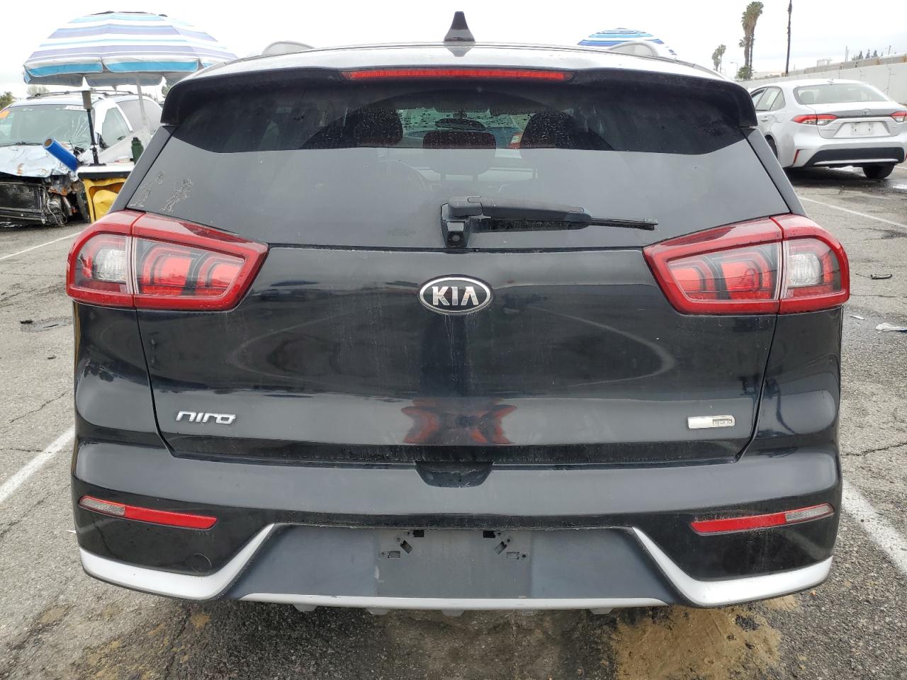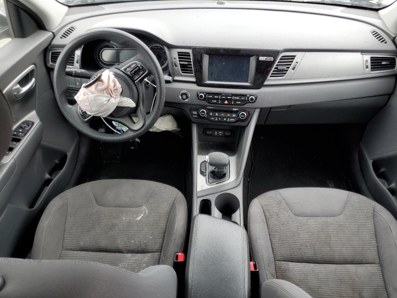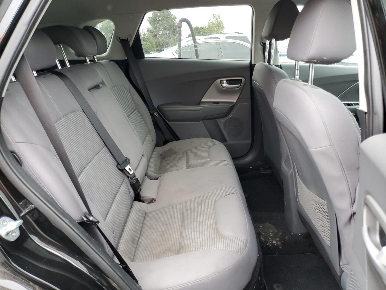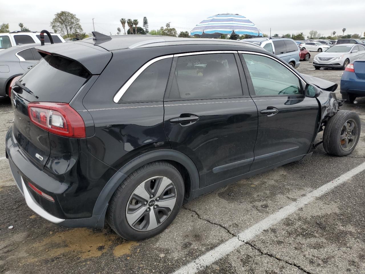 FairKIA NIRO FE 2017. This black SUV shows significant damage. The front end is severely impacted, with extensive damage to the body panels and structural components. The wheels appear to be intact but may have related damage. The airbags have deployed, indicating a significant collision. Interior damage is evident, with visible wear and tear throughout the cabin. This vehicle requires substantial repairs and is likely not drivable in its current condition. The car have a start code of 2017.
