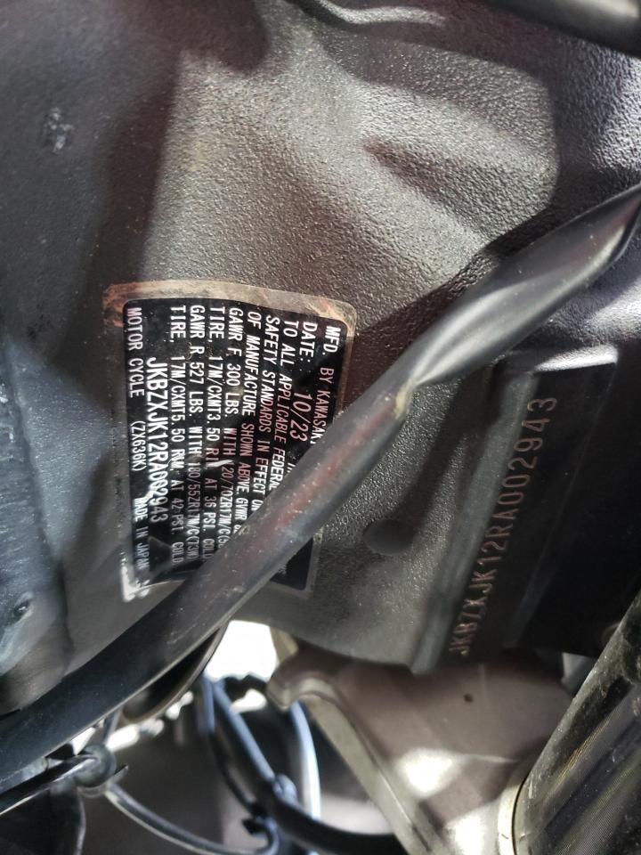 FairThe KAWASAKI ZX636 K 2024 is a white motorcycle with front end and side damage, indicated by its "Run & Drive Verified" status. The vehicle's body panels show damage, which affects the overall exterior condition. Although the vehicle is drivable, repairs are needed. The interior appears to be in good condition. The motorcycle may require replacement of some elements.