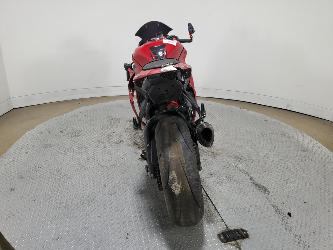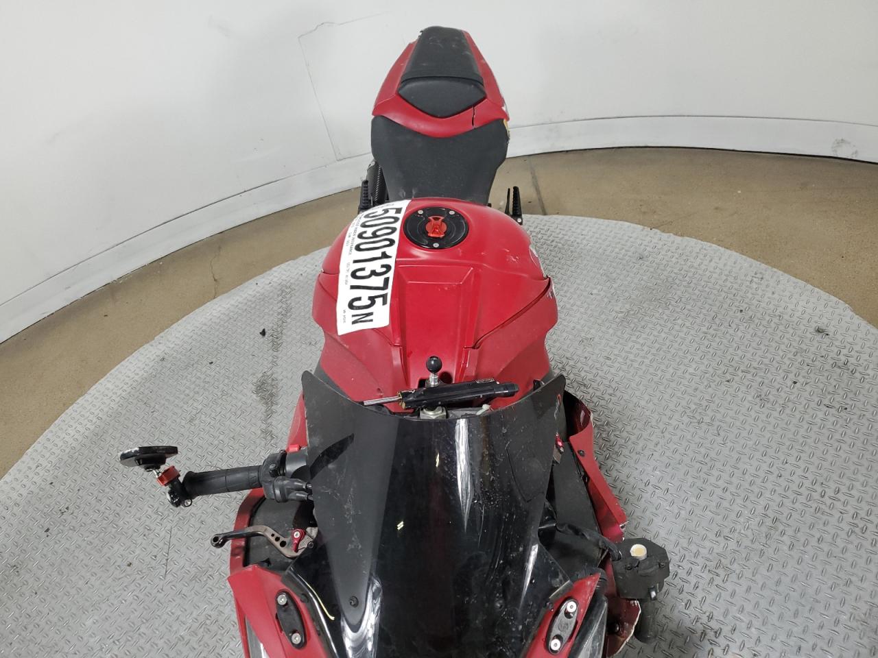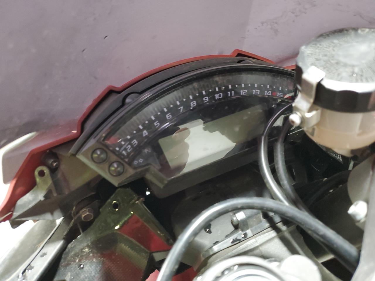 FairThe KAWASAKI ZX1000 J 2013, a red motorcycle, exhibits damage primarily to the side, with secondary hail damage. The motorcycle itself is a high-performance sportbike known for its power and handling.
