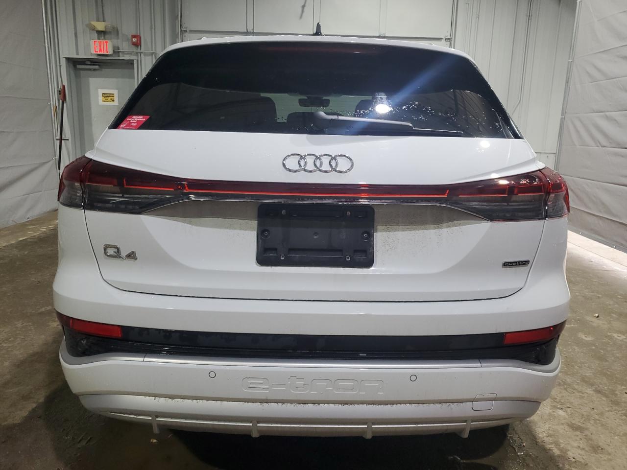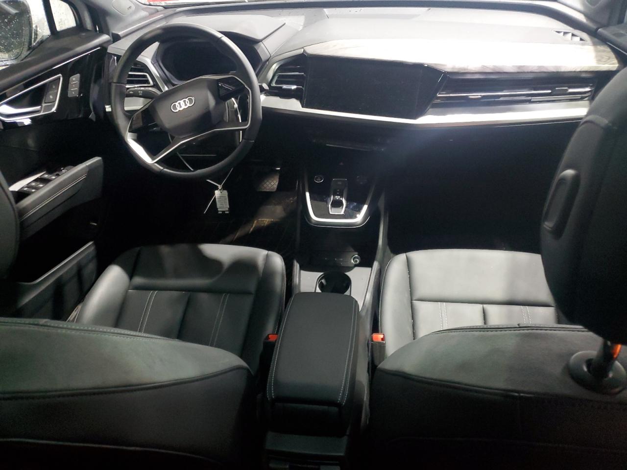 FairThis is a white 2024 Audi Q4 e-tron. The primary damage is to the front end. The car has minor dents and scratches. The interior appears to be in good condition. The wheels and glass appear to be intact, but the front end damage is significant.