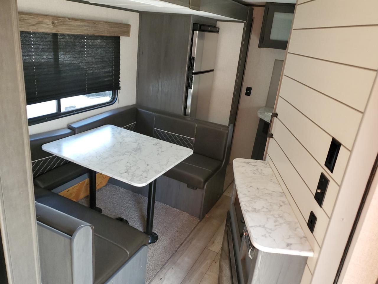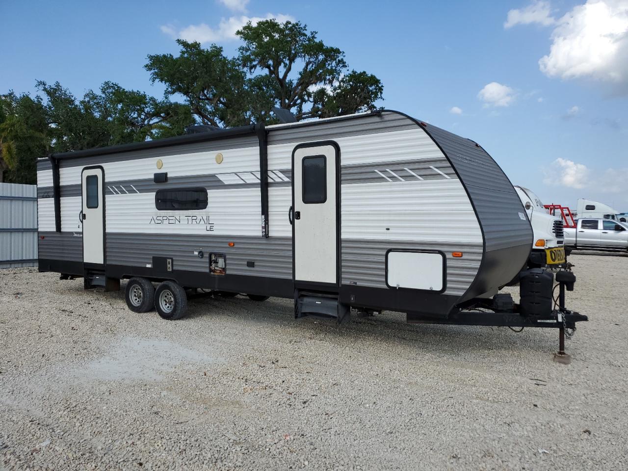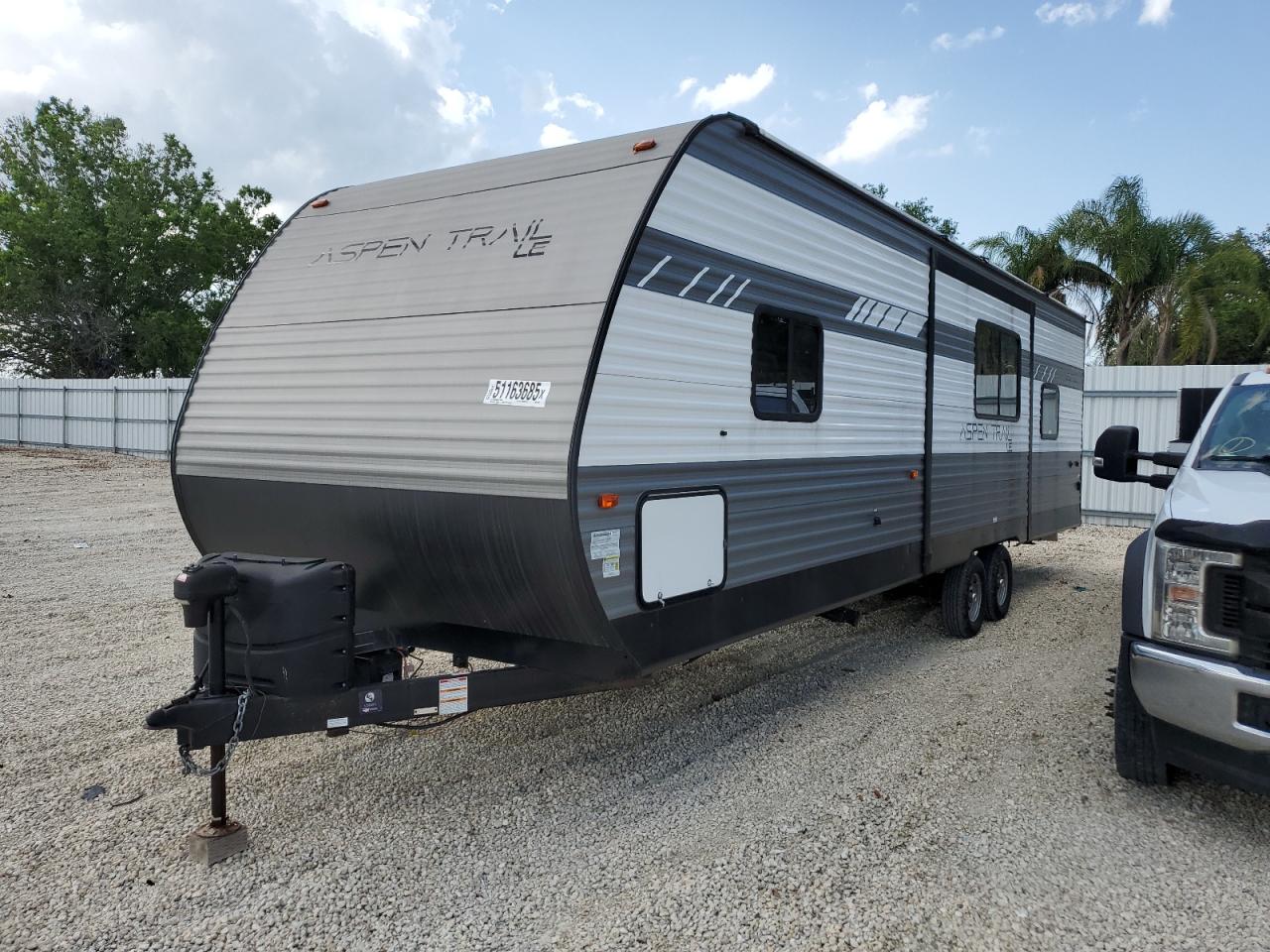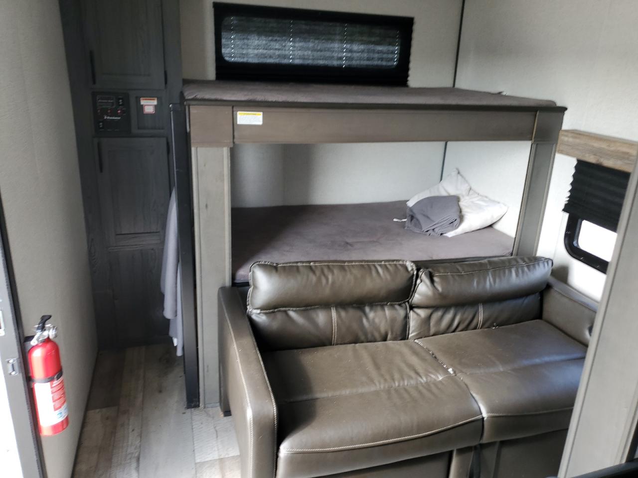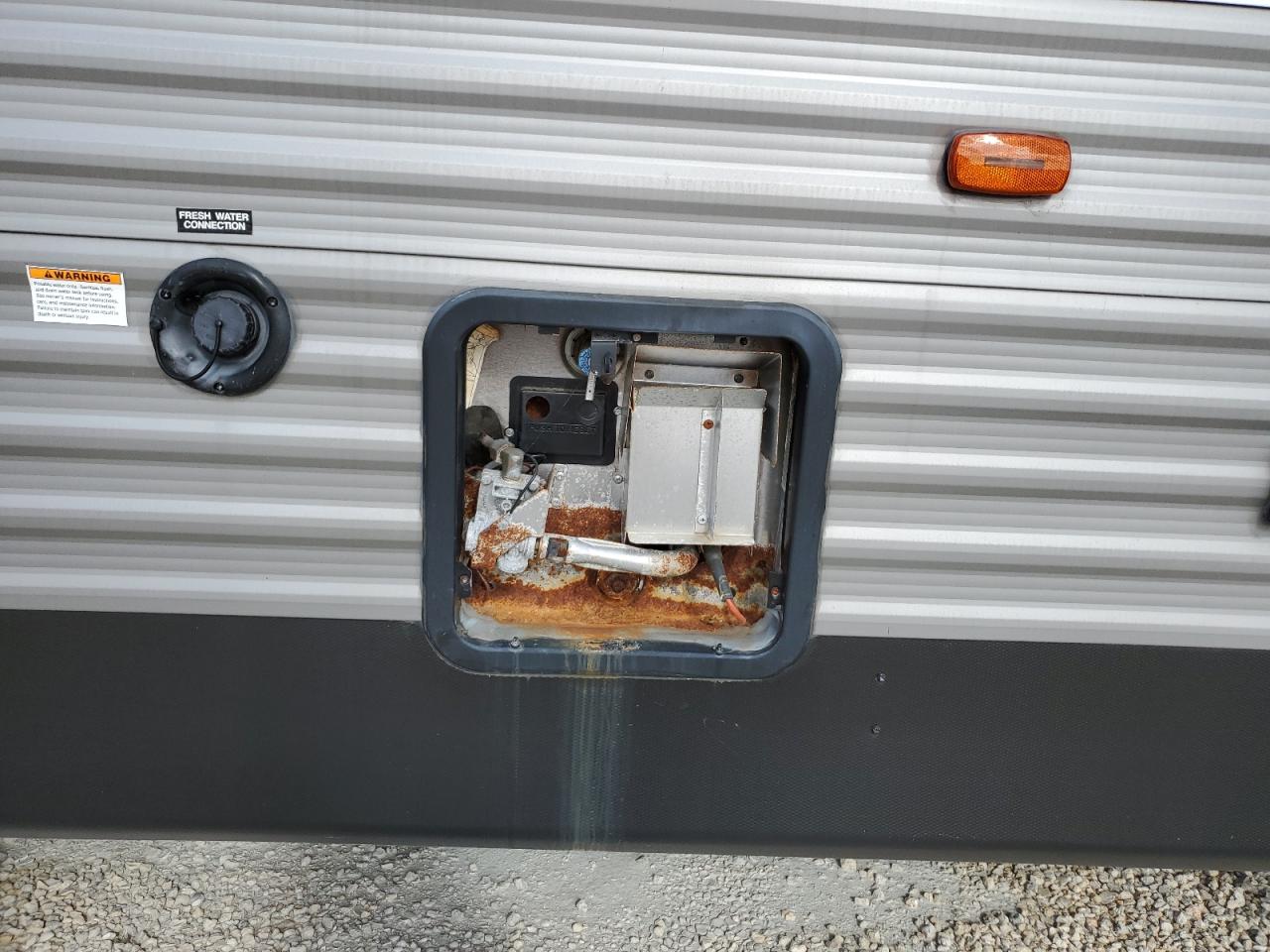 FairThe KEYSTONE TRVL TRL 2021, is a gray travel trailer. It appears to have sustained water/flood damage. The exterior condition is assessed as Fair, with moderate visible damage. The interior is in Good condition, showing minor wear. The overall state of the trailer is Fair, indicating the need for repairs. The wheels and lights look to be in good shape.