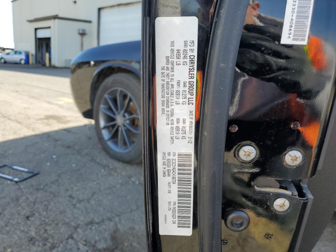 FairThe black 2012 Dodge Challenger shows front-end damage, categorized as Body damage. The car is Run & Drive Verified. Interior shows some wear and tear, but there's no information about airbag status.