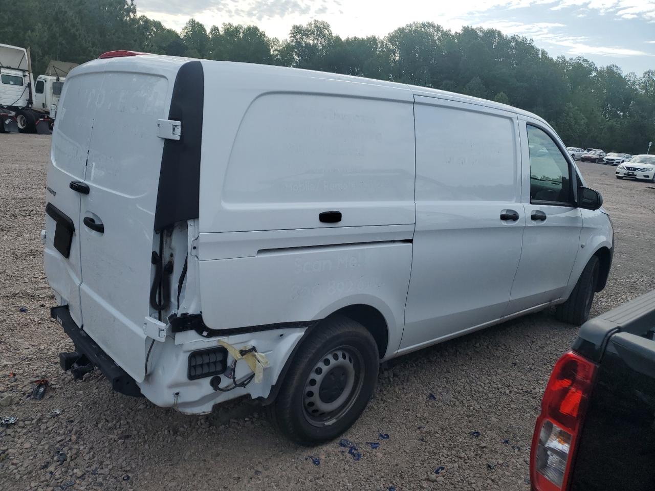 Fair2023 MERCEDES-BENZ METRIS with rear-end damage. The vehicle is white and has a Run & Drive Verified status. The primary damage is to the rear end, with no secondary damage reported. The car's condition suggests it requires repair, particularly to the body panels at the rear. The interior shows some wear and tear, but overall it's in good condition. Airbags status not visible. The wheels, lights, and glasses appear to be in good condition.