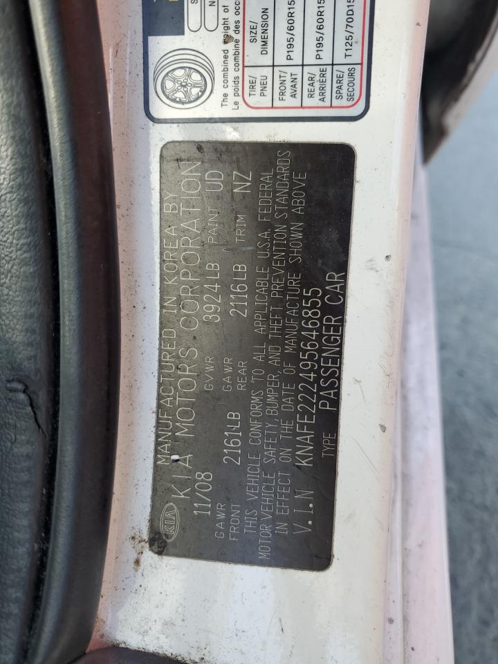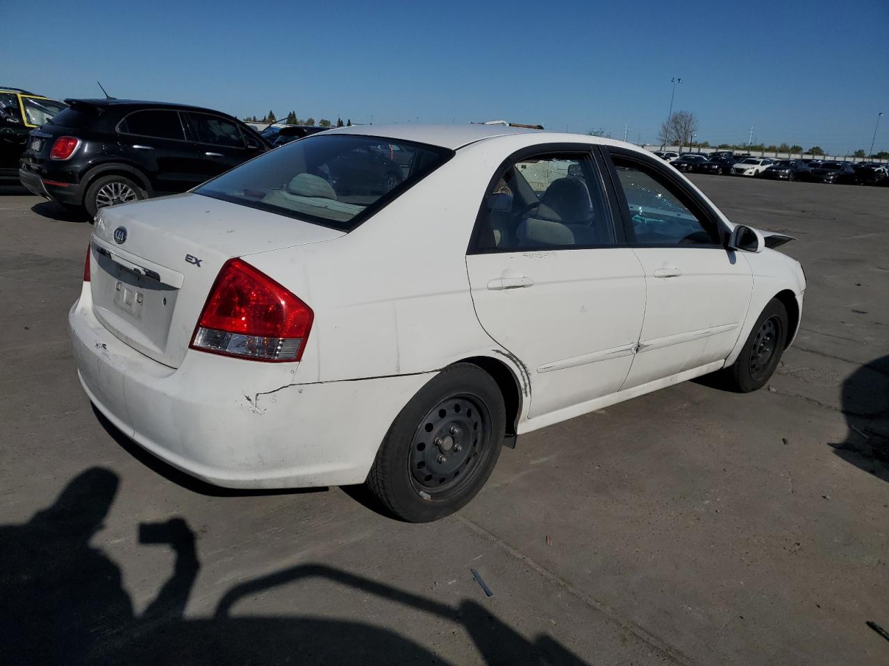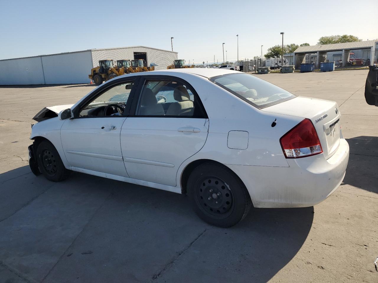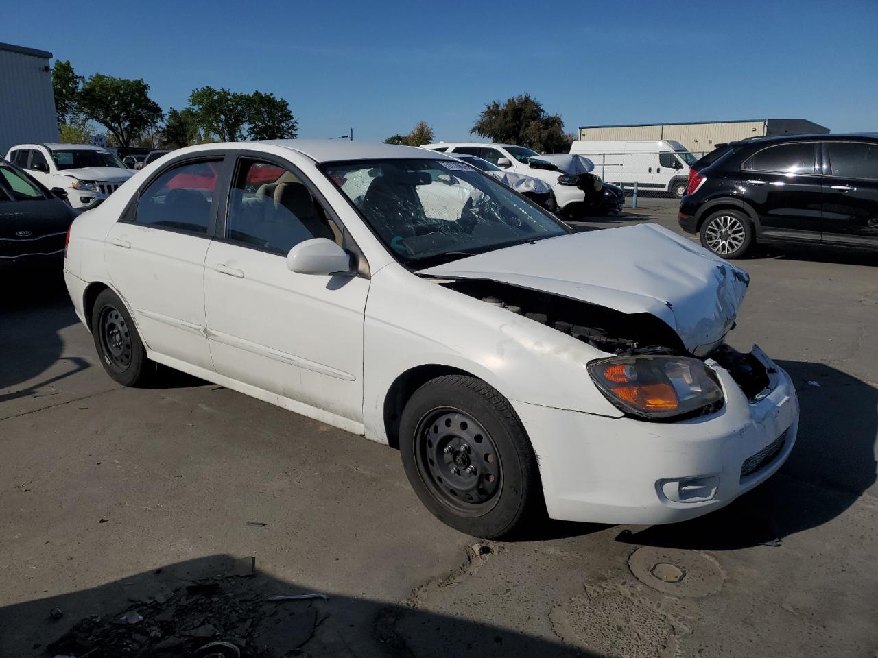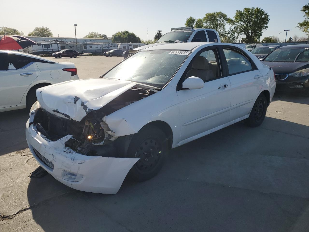 FairThe 2009 KIA SPECTRA EX is a white sedan. The primary damage is to the front end. The car's front end shows significant damage, impacting the hood, bumper, and possibly the front lights. The vehicle is described as 'Run & Drive Verified.' Interior condition appears relatively well-maintained, the car overall condition could be better.