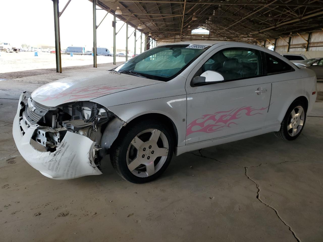 FairThis 2008 Chevrolet Cobalt SPO shows signs of significant damage, primarily to the front end. The vehicle is white with pink flame decals, but the front bumper and other front-end components are severely damaged. The interior shows wear and tear. The car has a Run & Drive Verified status.