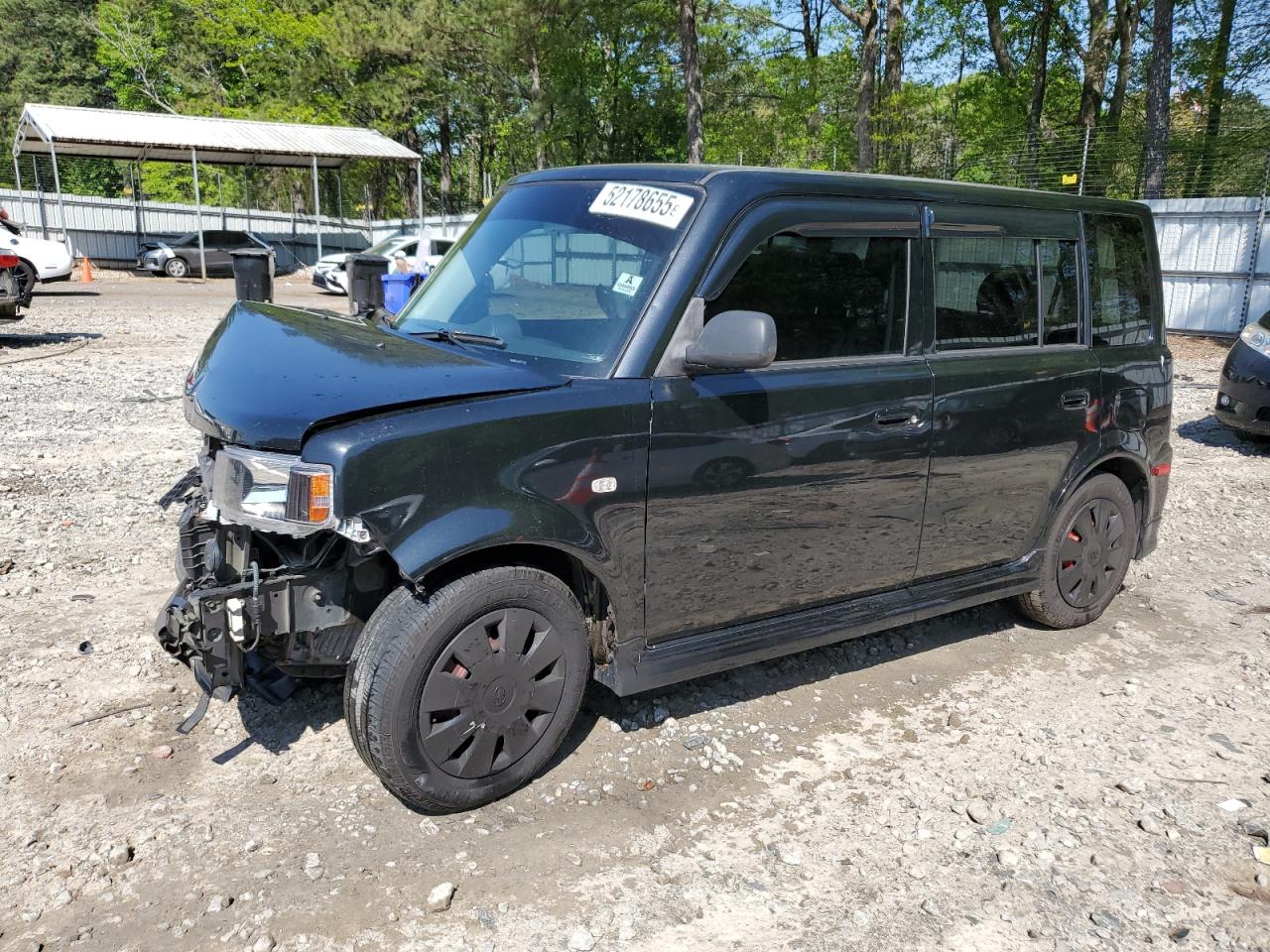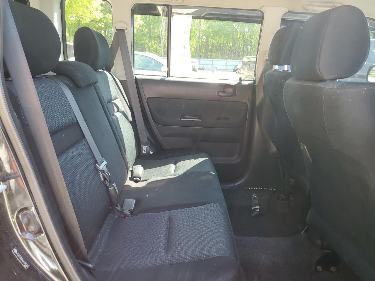 FairThis is a 2006 SCION XB, presenting with significant front-end and side damage. The vehicle's color is black. The car's engine is running.
