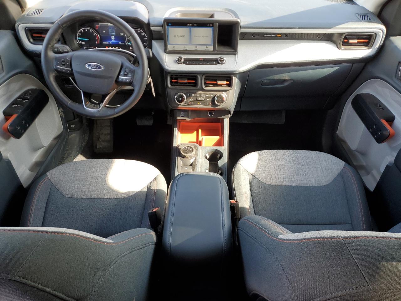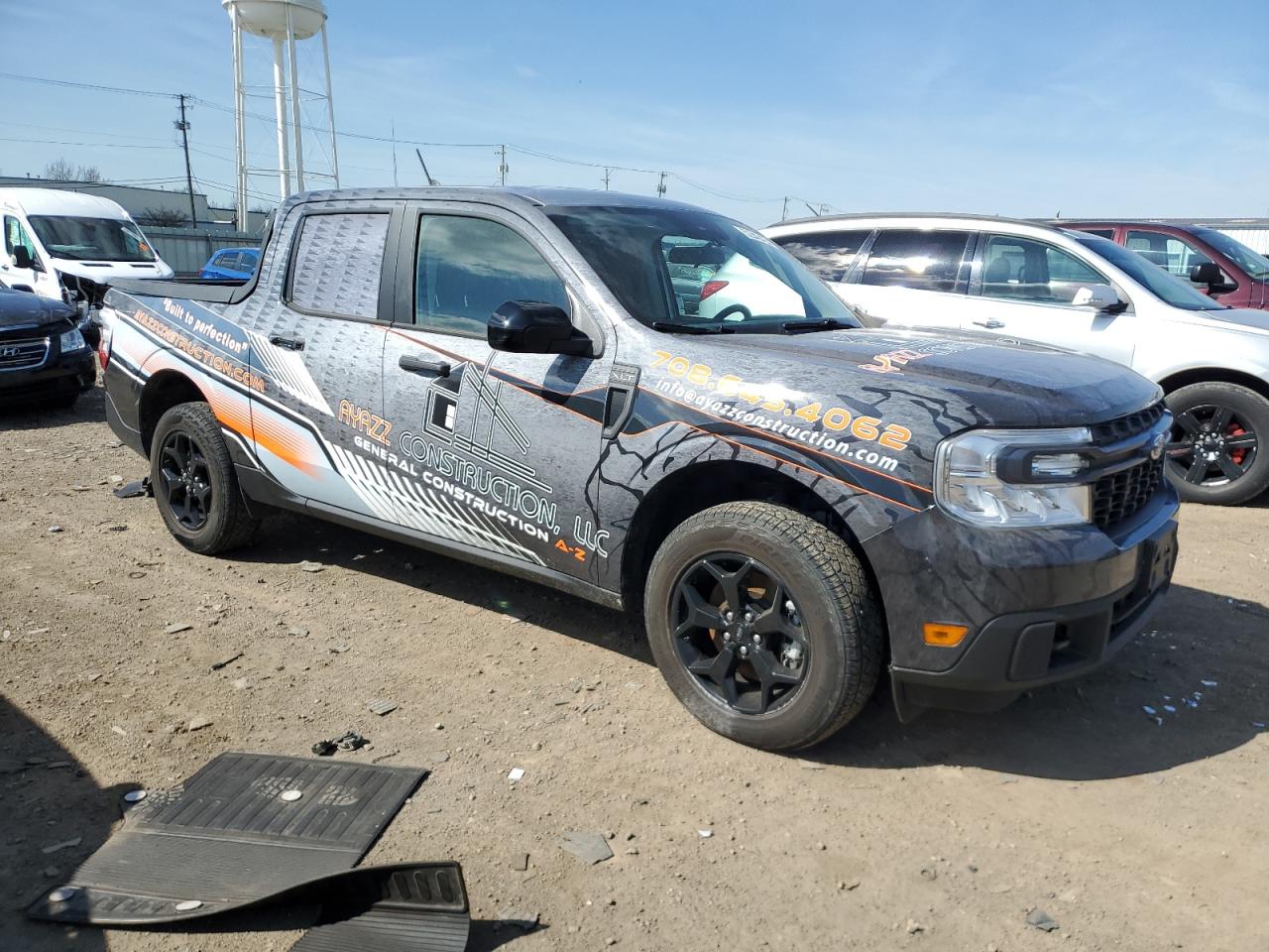 Fair2024 FORD MAVERICK X, silver color. Primary damage: FRONT END, secondary: SIDE. Start code: Run & Drive Verified. The car shows significant front-end damage, impacting the front bumper, hood, and potentially the front fenders. There is also side damage, with possible panel damage. The wheels appear to be intact. Interior damage is visible, with some wear and tear. The airbags status are unknown. The vehicle is drivable despite the damage.