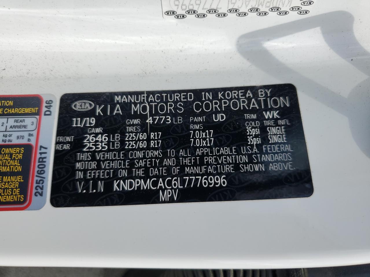 KNDPMCAC6L7776996Final Bid