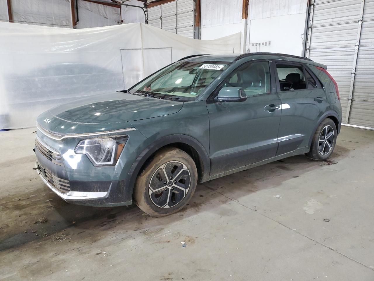 FairThe 2024 KIA NIRO EX, colored green, presents with significant flood damage. The primary damage is water/flood, with secondary front-end damage. The vehicle's exterior shows moderate to significant visible damage, indicating a need for considerable repair and affecting its drivability. The wheels appear intact, but the interior condition is severely affected due to water damage, which includes mud. Airbags should be further checked. The car itself is a hybrid SUV, offering good fuel economy and modern features. Overall Condition: Poor. Vehicle Damage Category: Body.