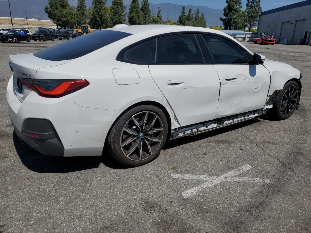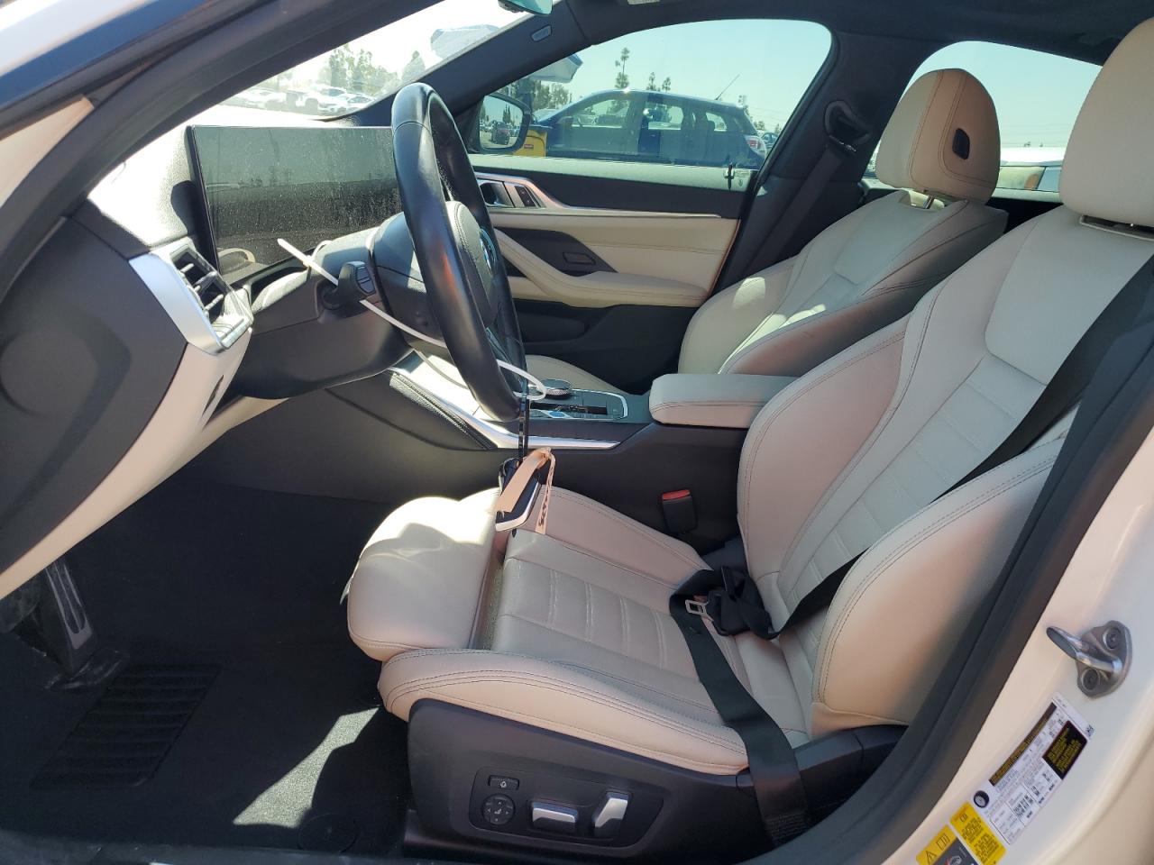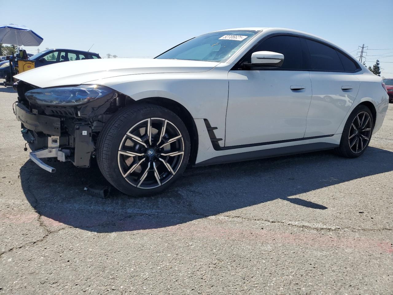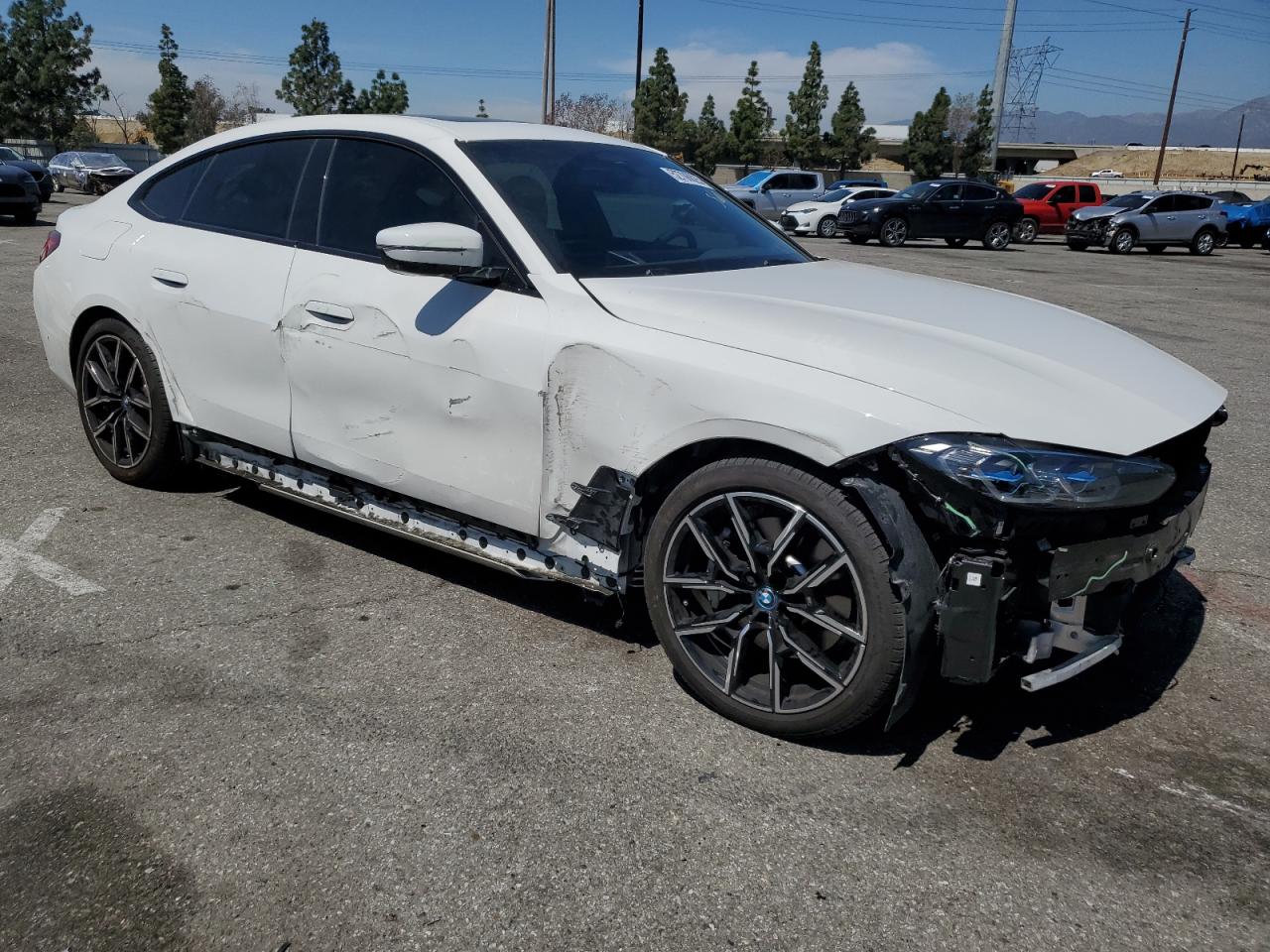 FairThis white 2023 BMW i4 eDrive shows front end and side damage. The car is listed as Run & Drive Verified. The wheels appear to be intact. The lights and glasses seem undamaged. The interior has minimal wear and tear. Summary: This car has significant body damage. Its overall condition is fair. The vehicle's damage category is body.