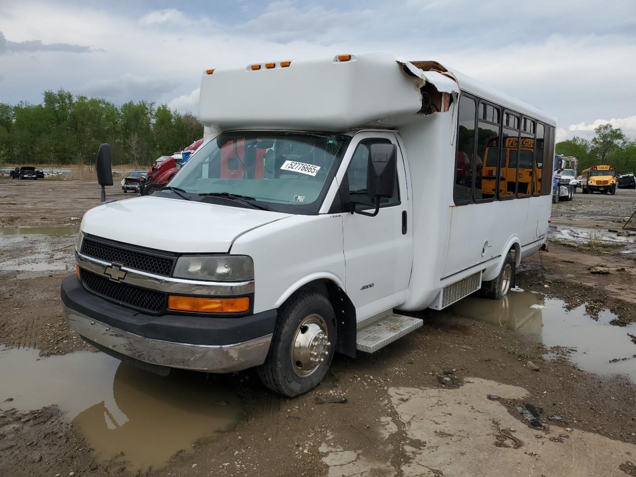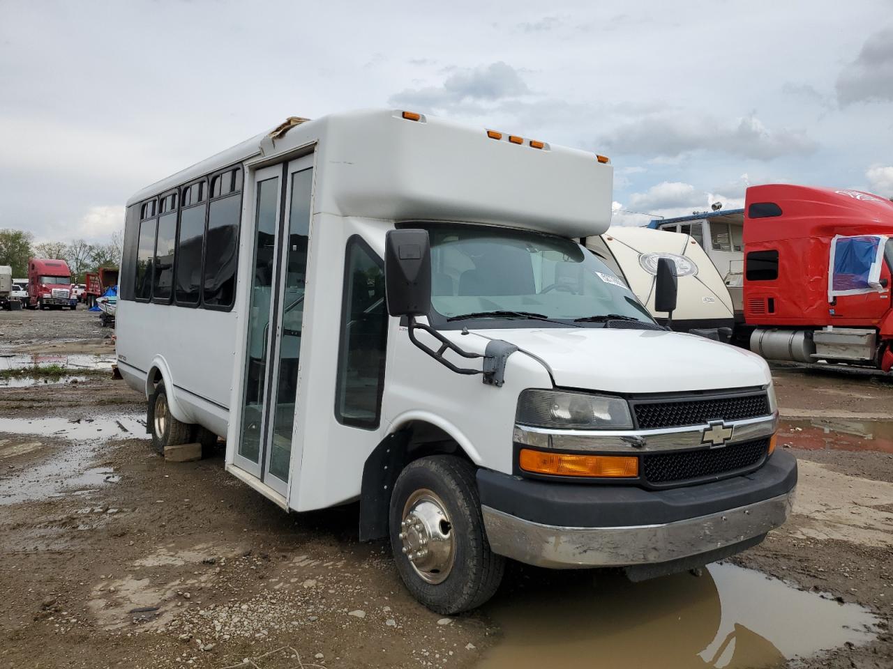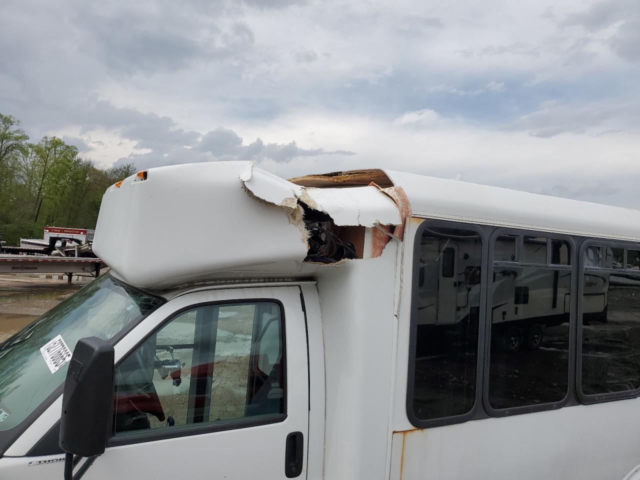 FairThis is a white 2013 CHEVROLET EXPRESS G4. It has sustained significant damage to the top/roof, categorizing the vehicle damage as Body. The vehicle starts. The interior shows signs of wear consistent with its age and mileage. The exterior has moderate visible damage, with the wheels appearing to be in good condition. The lights and glasses seem intact, but the overall condition requires repairs for drivability. A thorough inspection is recommended. Summary: Damage: Major roof damage, body panels affected. Overall Condition: Fair Vehicle Damage Category: Body Synonyms: CHEVROLET, EXPRESS, G4, 2013, damaged bus, salvage bus, roof damage, body damage, drivable but requires repair, bus for sale, used bus. Needs repair before it can be on the road.