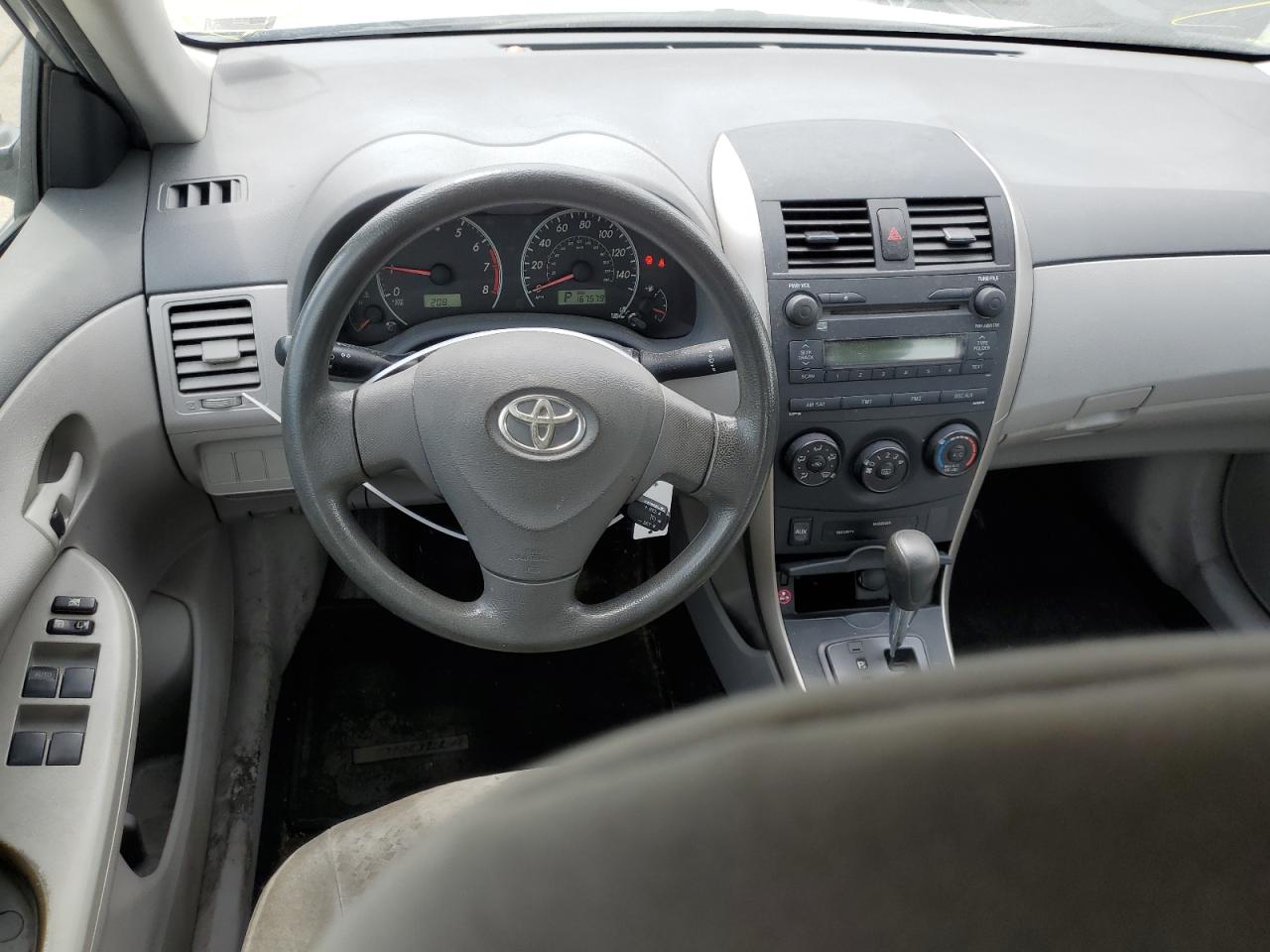 FairThe 2009 TOYOTA COROLLA BA is a silver sedan with visible front-end damage. The vehicle starts and is verified as run and drive. The exterior shows significant damage, primarily to the front end, including the bumper, front lights, and potentially the hood. The wheels appear to be intact. The interior has moderate damage, the seats show wear, and the dashboard appears functional. The vehicle's overall condition reflects the impact damage.