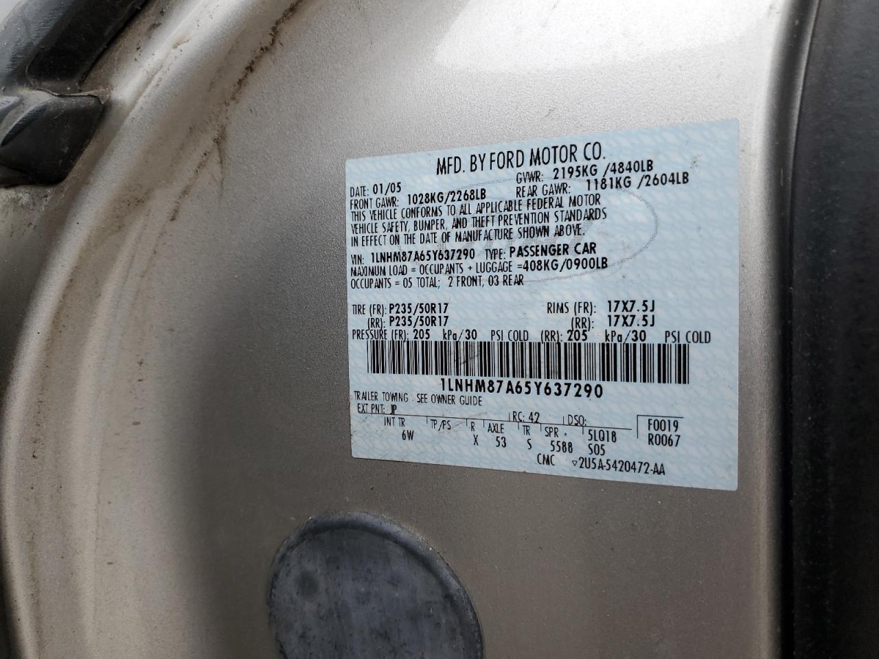 1LNHM87A65Y637290Final Bid