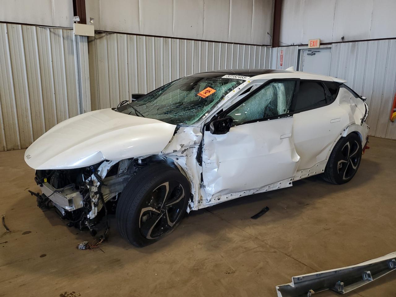 PoorThe KIA EV6 GT LINE 2024 is extensively damaged. The vehicle's white body exhibits significant impact damage across multiple panels. Both front and rear, show severe deformation. Windows are compromised. Interior damage includes deployed airbags. This car is in poor overall condition.