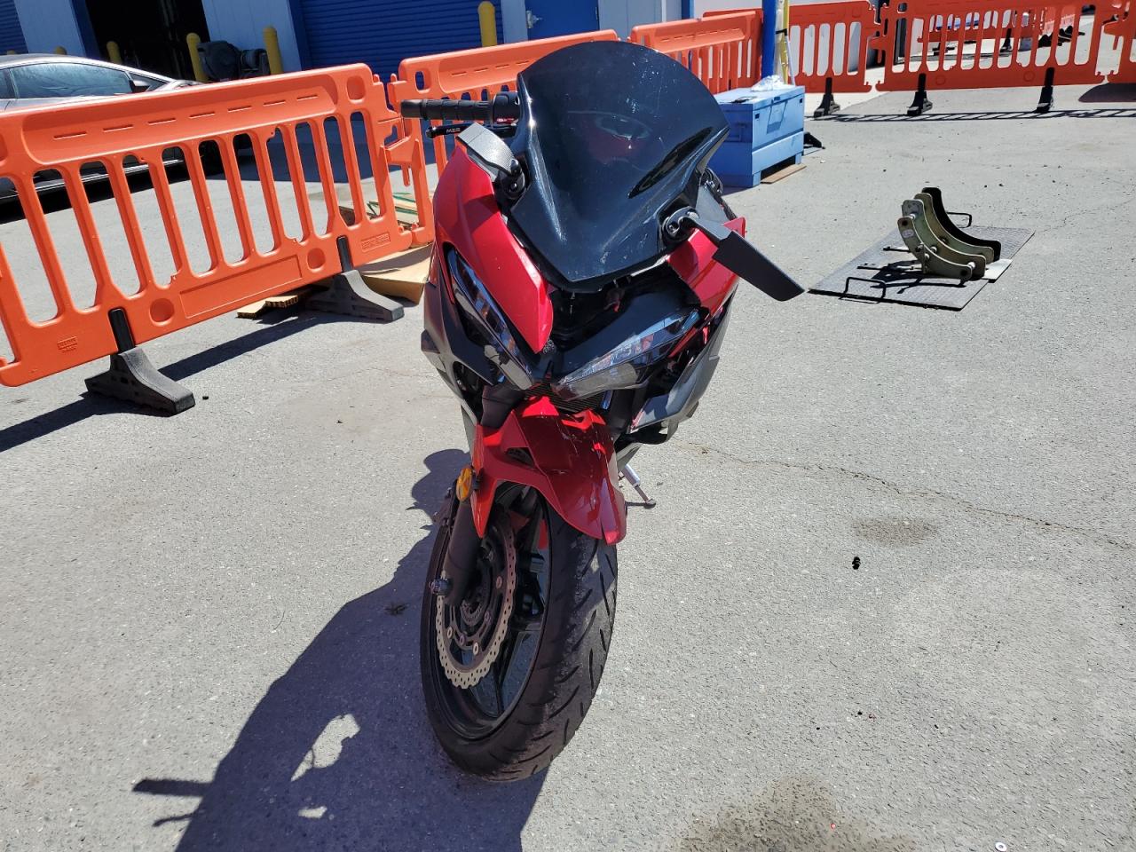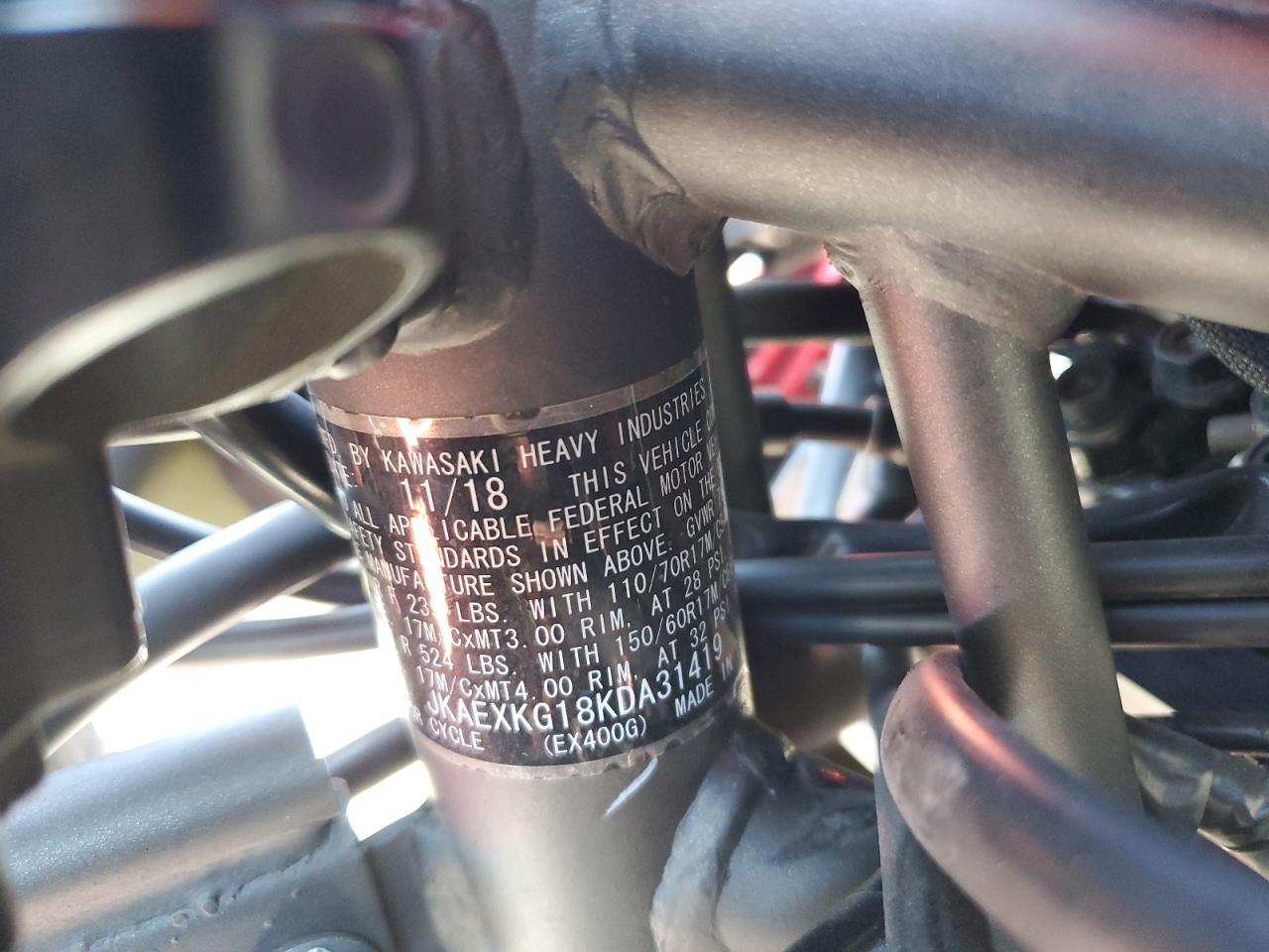 GoodThe KAWASAKI EX400 2019, identified by its red color, exhibits primarily SIDE damage with no secondary damage. The vehicle starts and drives, confirmed by the Run & Drive Verified status.