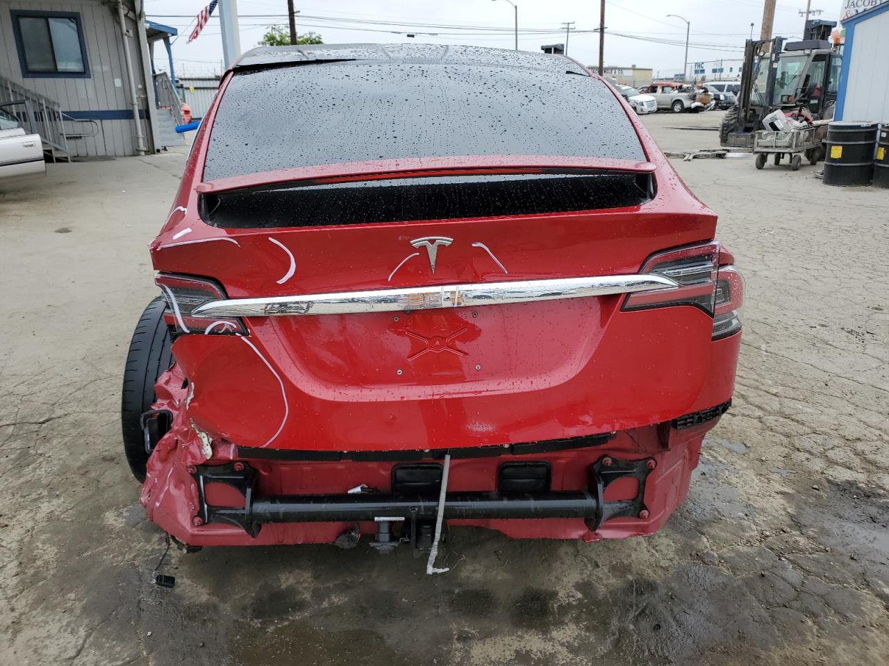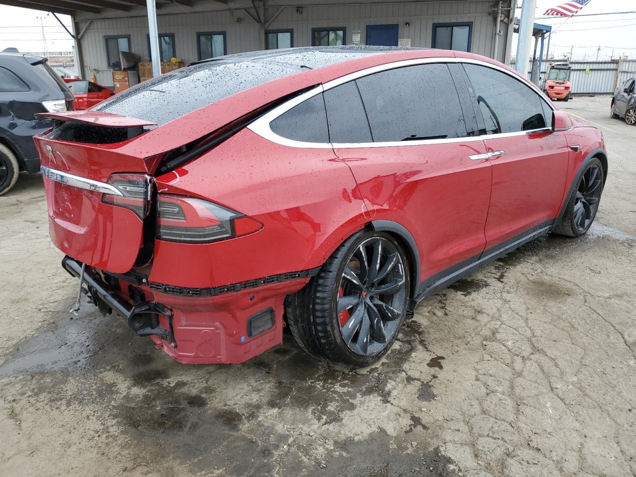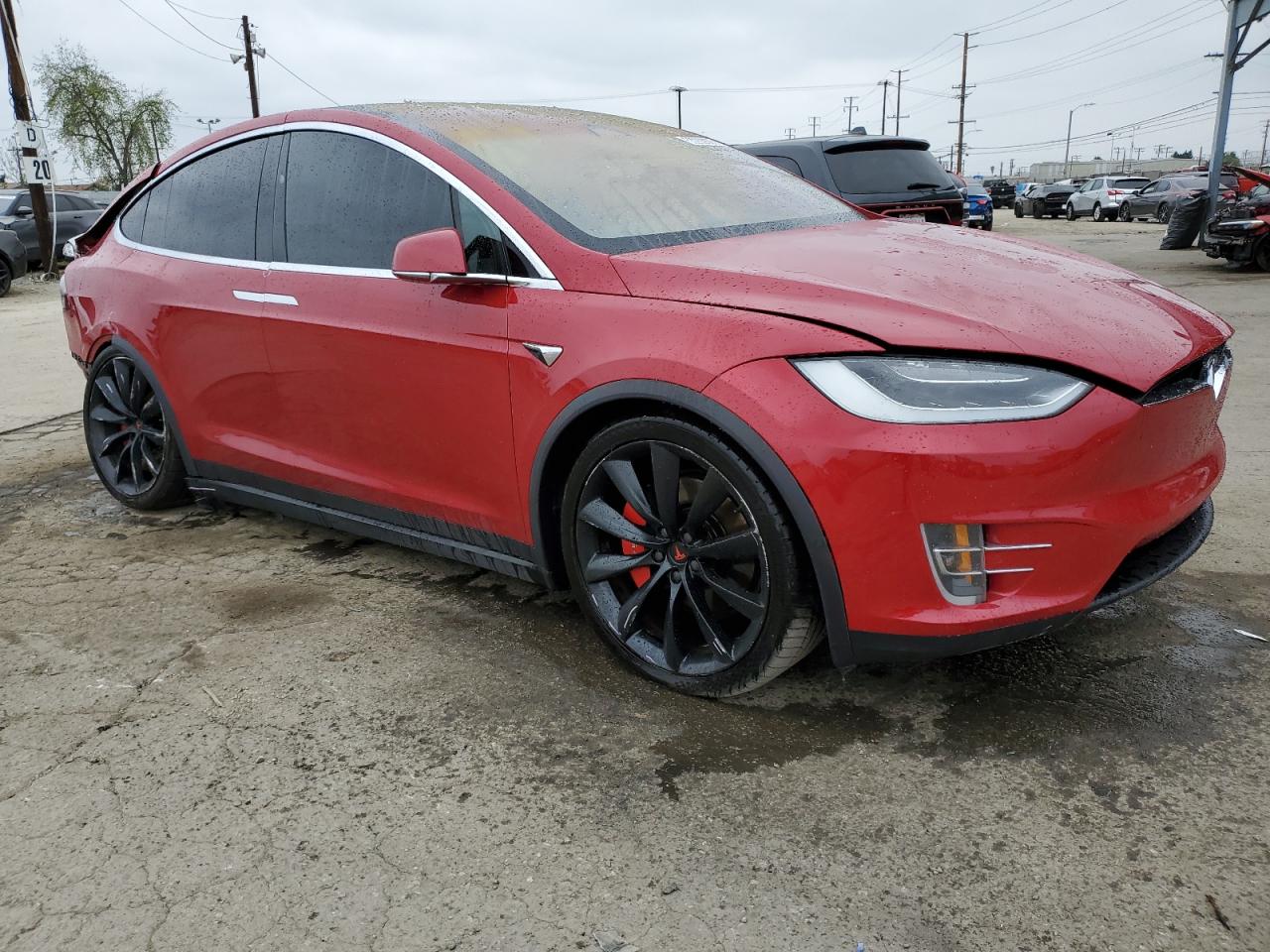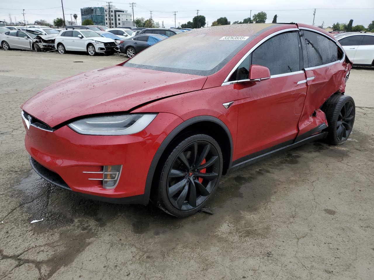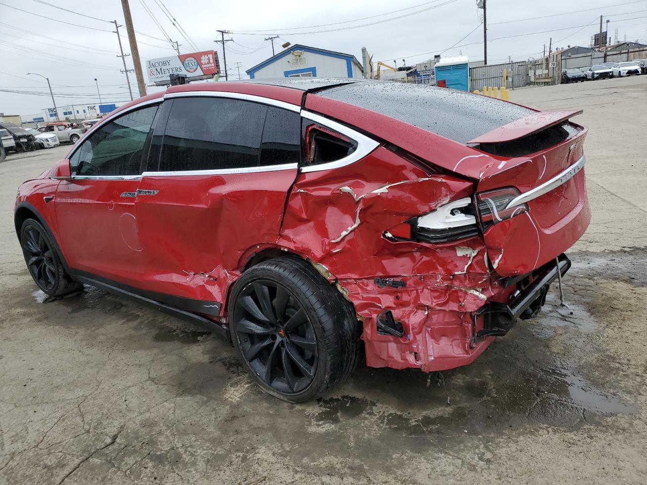 PoorThe 2018 Tesla Model X is red and has sustained significant damage. The primary damage is to the rear end, with secondary damage on the side. The vehicle starts. The wheels appear to be intact, and the lights and glasses have visible damage.
