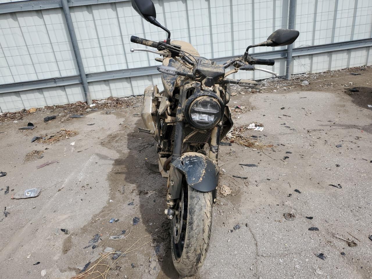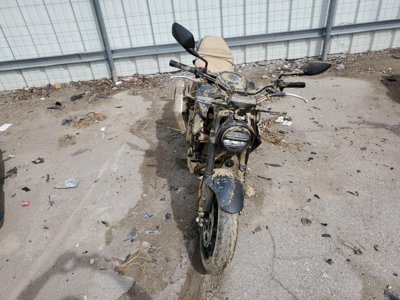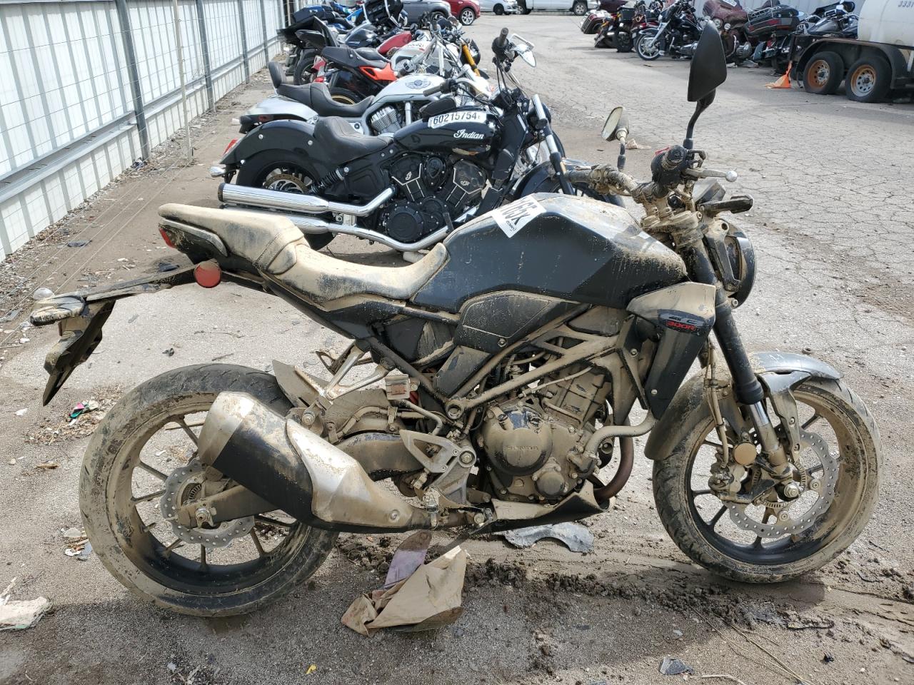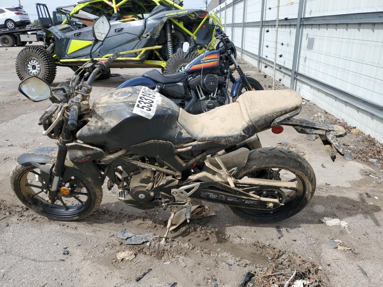 FairThe 2023 Honda CBF300 NA, a black motorcycle, has sustained significant water/flood damage throughout. The body panels and components show extensive mud and debris, indicating submersion. The vehicle starts and drives, but requires considerable repair.