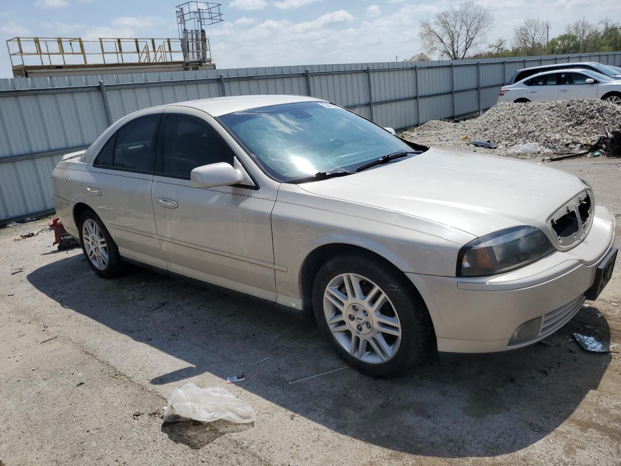 FairThis is a 2003 LINCOLN LS, showcasing a white exterior. The vehicle's primary damage is to the front end, with no secondary damage reported. The car's start code indicates it is 'Run & Drive Verified'. The vehicle presents with moderate visible damage. The interior shows signs of wear consistent with age and mileage. The wheels, lights, and glasses appear to be in decent condition. The car is drivable, and requires some repairs.