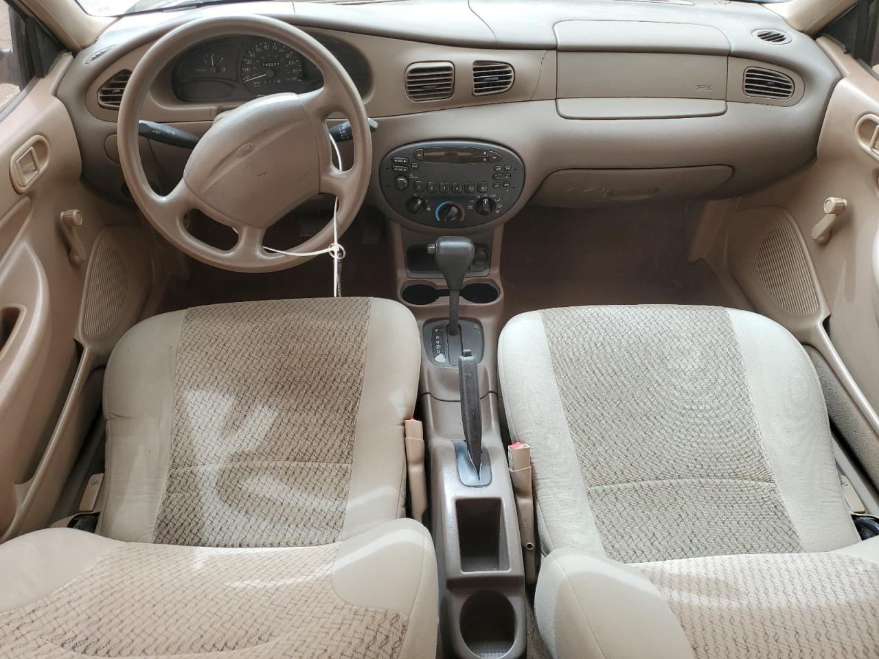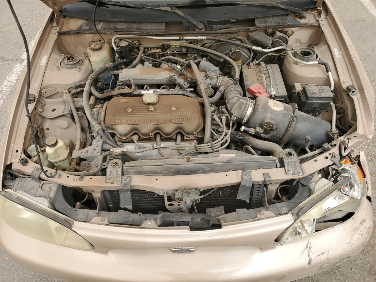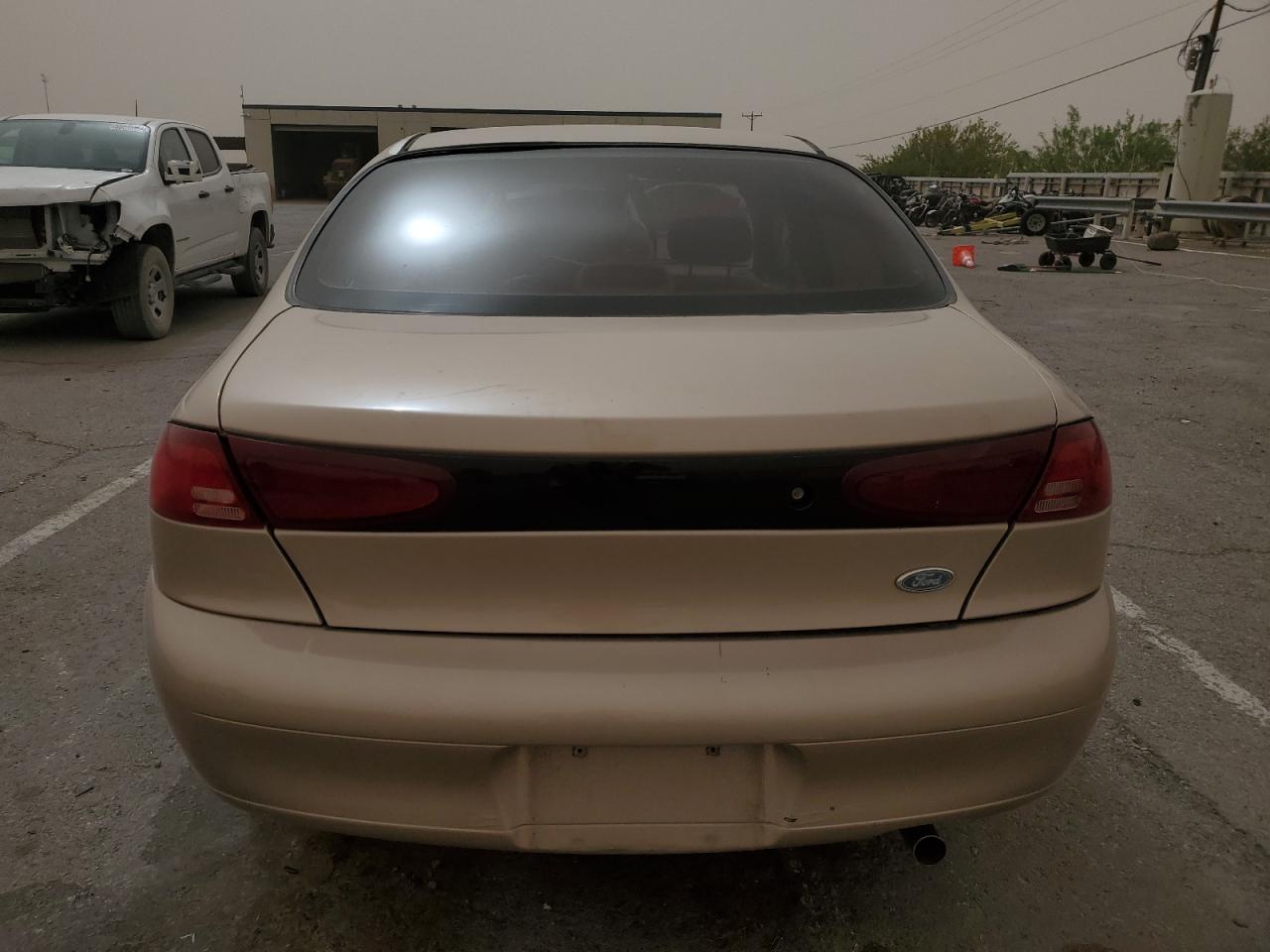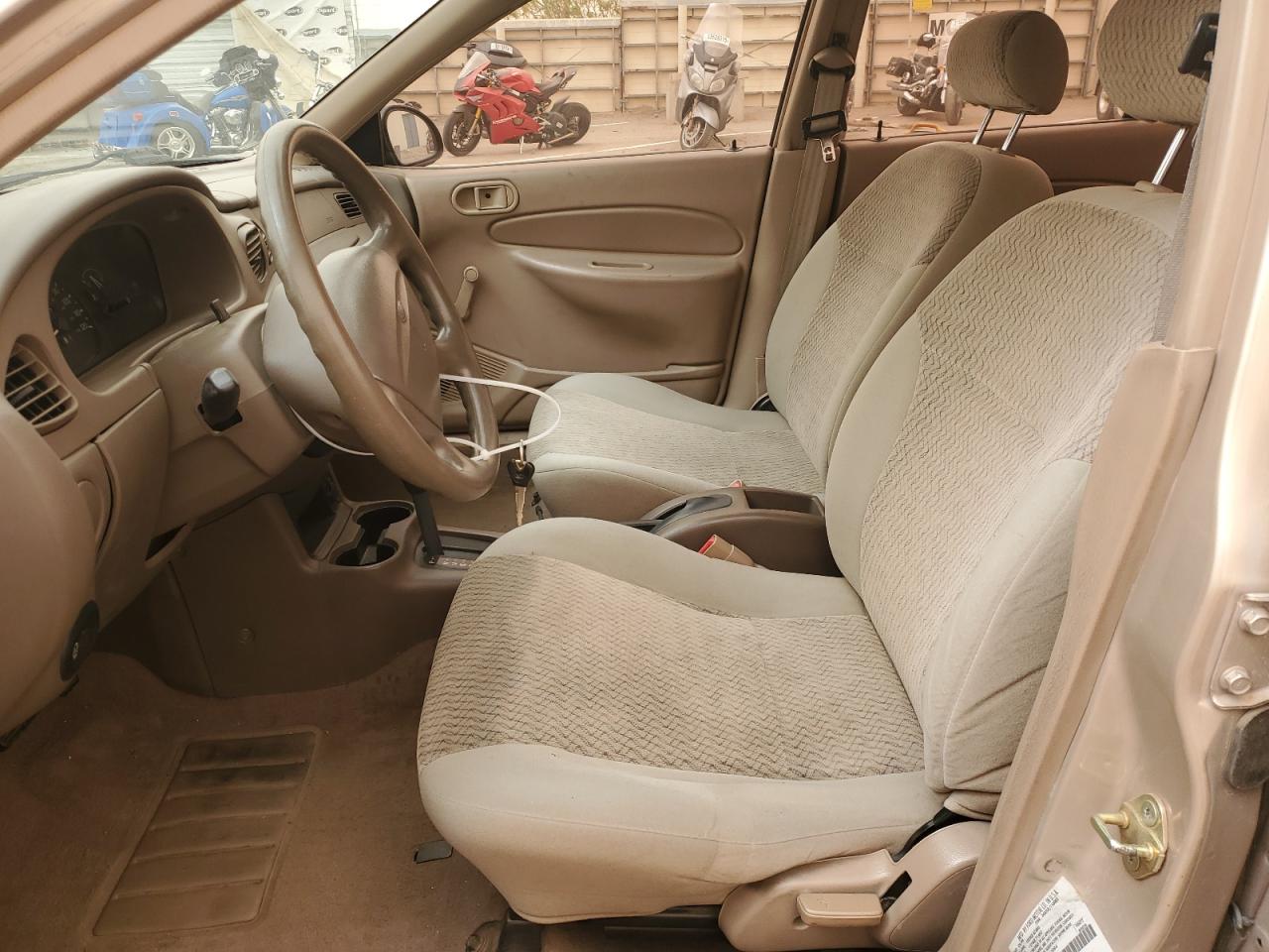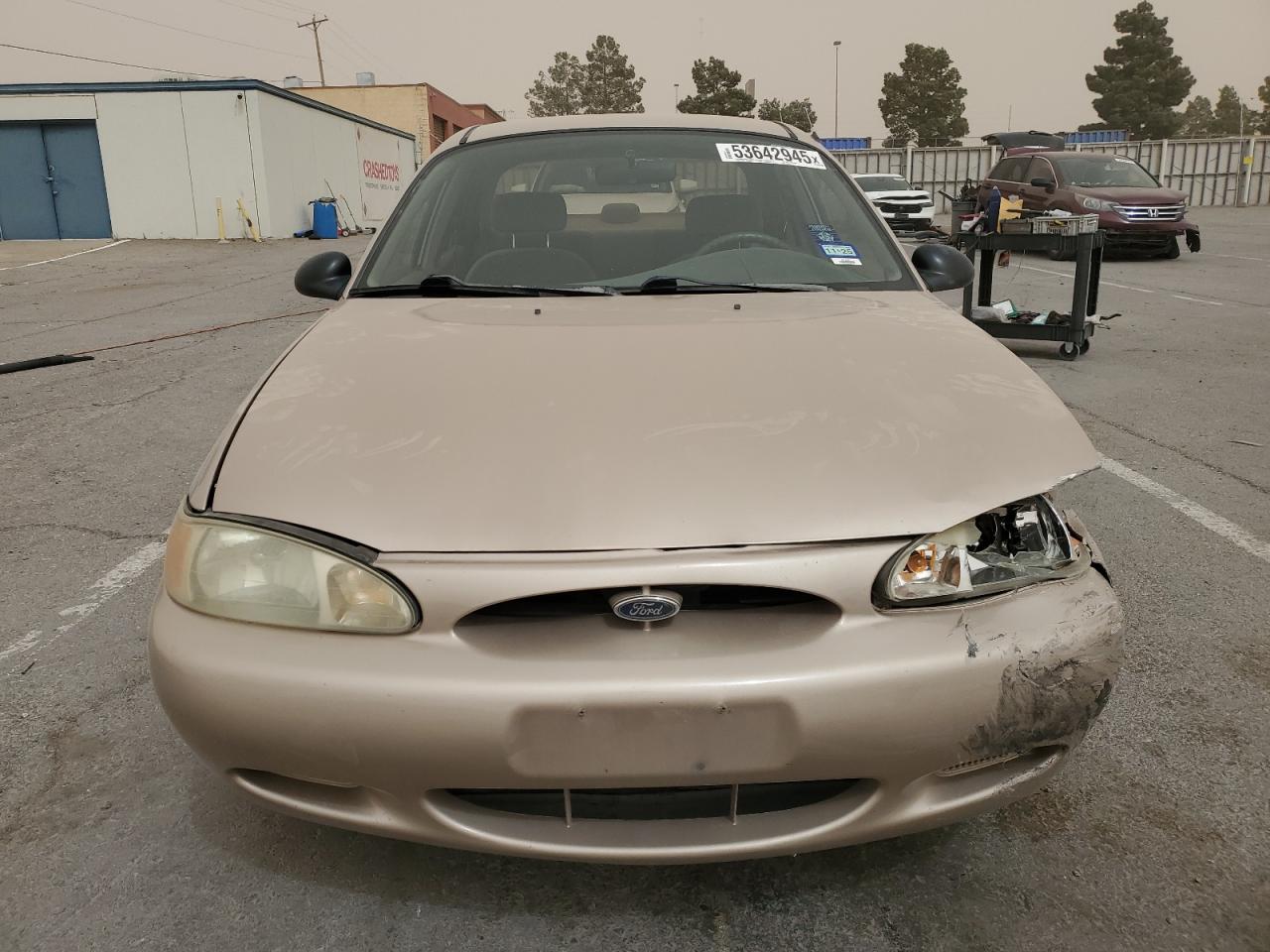 FairThis is a 1999 Ford Escort LX in tan. The primary damage is to the front end, with secondary mechanical issues. The car's exterior shows moderate visible damage, including a damaged front bumper and possible damage to the front fender. The wheels appear to be in decent condition. The interior has minor wear and tear consistent with its age and mileage. The car is drivable but requires repairs.