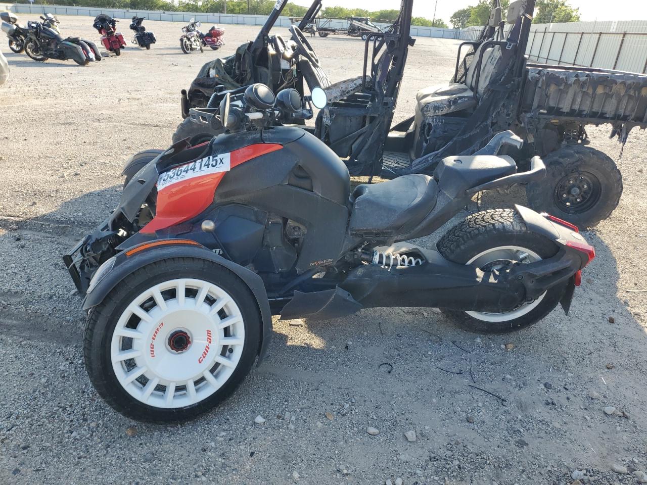 FairThis 2023 CAN-AM RYKER RALL, in black, shows front-end damage. The vehicle has cosmetic damage to the body panels. Despite the damage, the interior condition remains in good shape. The lights are visible but the glasses might need inspection. Overall, the vehicle's condition is fair, indicating moderate visible damage.