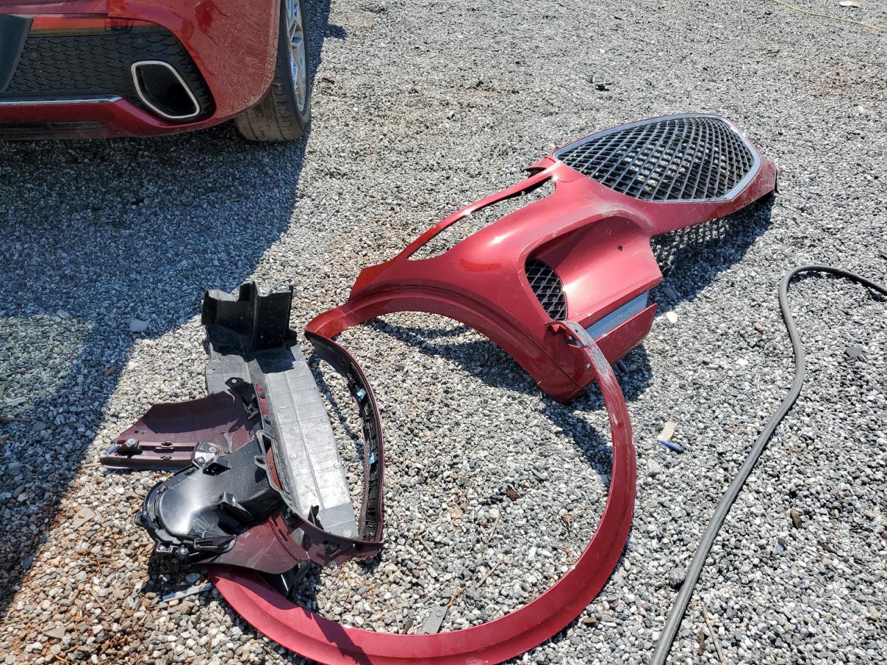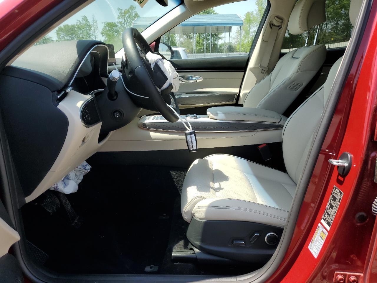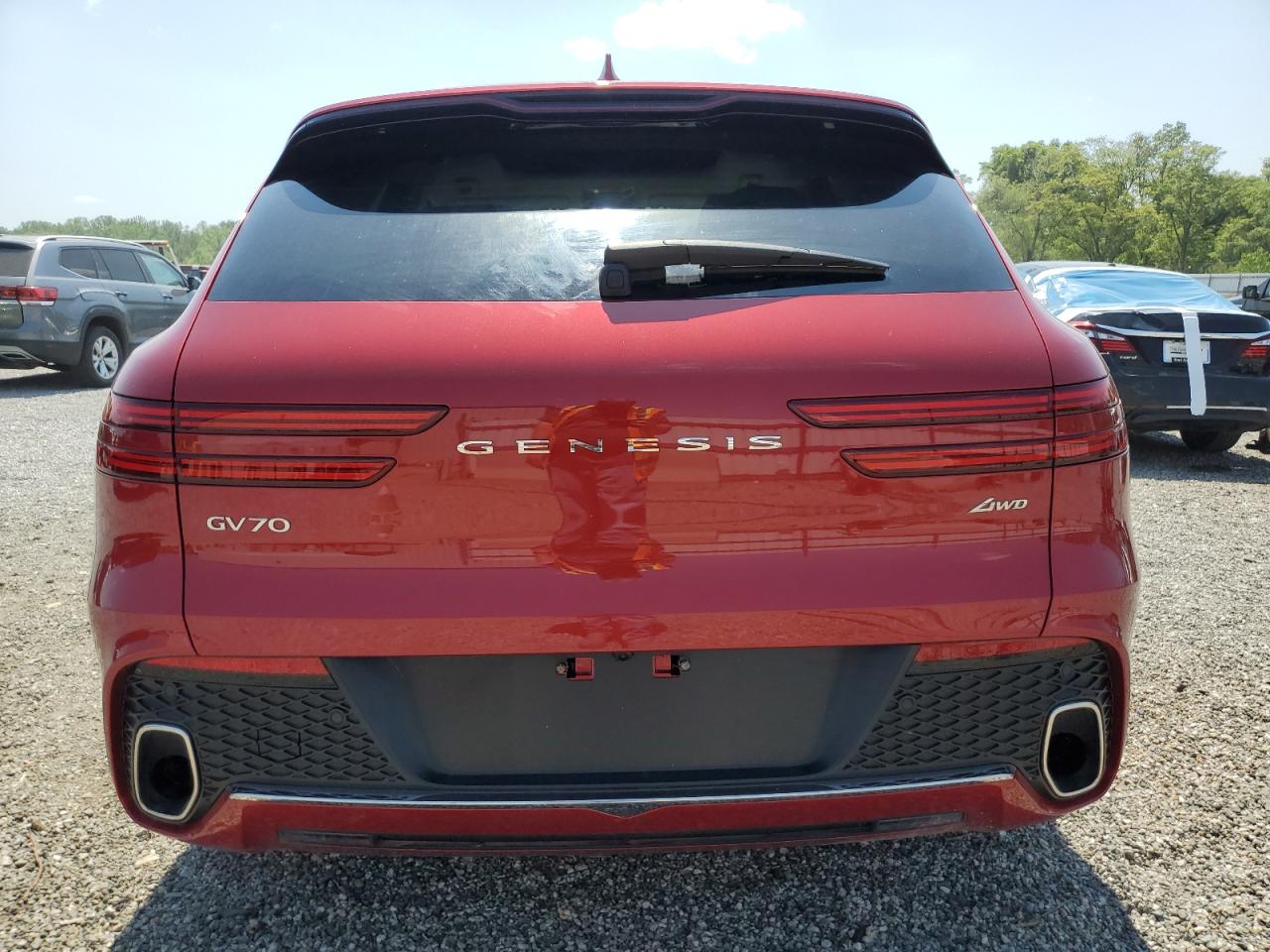 FairThe red GENESIS GV70 BASE 2025 shows significant front-end damage, categorized as Body damage. The car has a 'Run & Drive Verified' start code, indicating it can be driven. Damage includes a crumpled front end, affecting the lights, front body panels, and likely the frame. The wheels appear intact. Interior damage is also present, and the airbags have deployed. It's a candidate for repair.