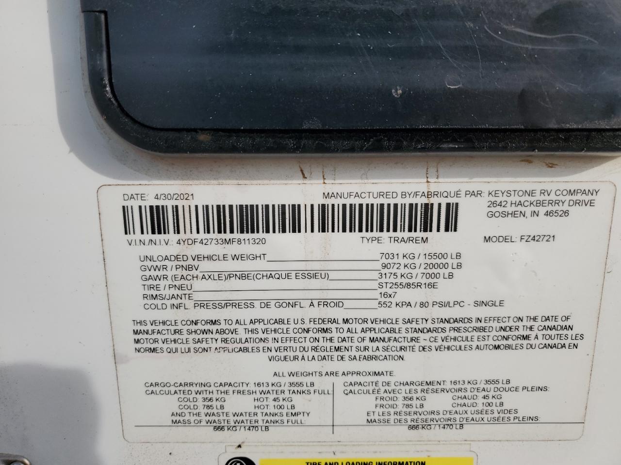 4YDF42733MF811320Final Bid
