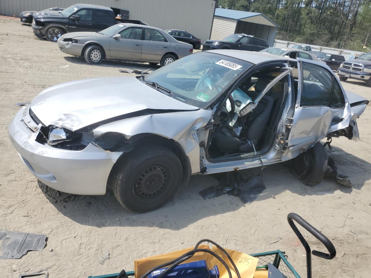 FairThis is a heavily damaged 2004 CHEVROLET CAVALIER. The vehicle has sustained significant damage, primarily to its body panels, with impact points visible across multiple areas. The silver-colored car shows signs of a major collision, with extensive structural deformation, particularly around the doors, roof, and rear end. Interior damage is also present, including potential airbag deployment and dashboard damage. The vehicle is in a state that requires considerable repair and is likely not drivable. The wheels and lights are not visible in usable state. The car's 'Run & Drive Verified' status is unlikely to be upheld due to the severity of the damage.
