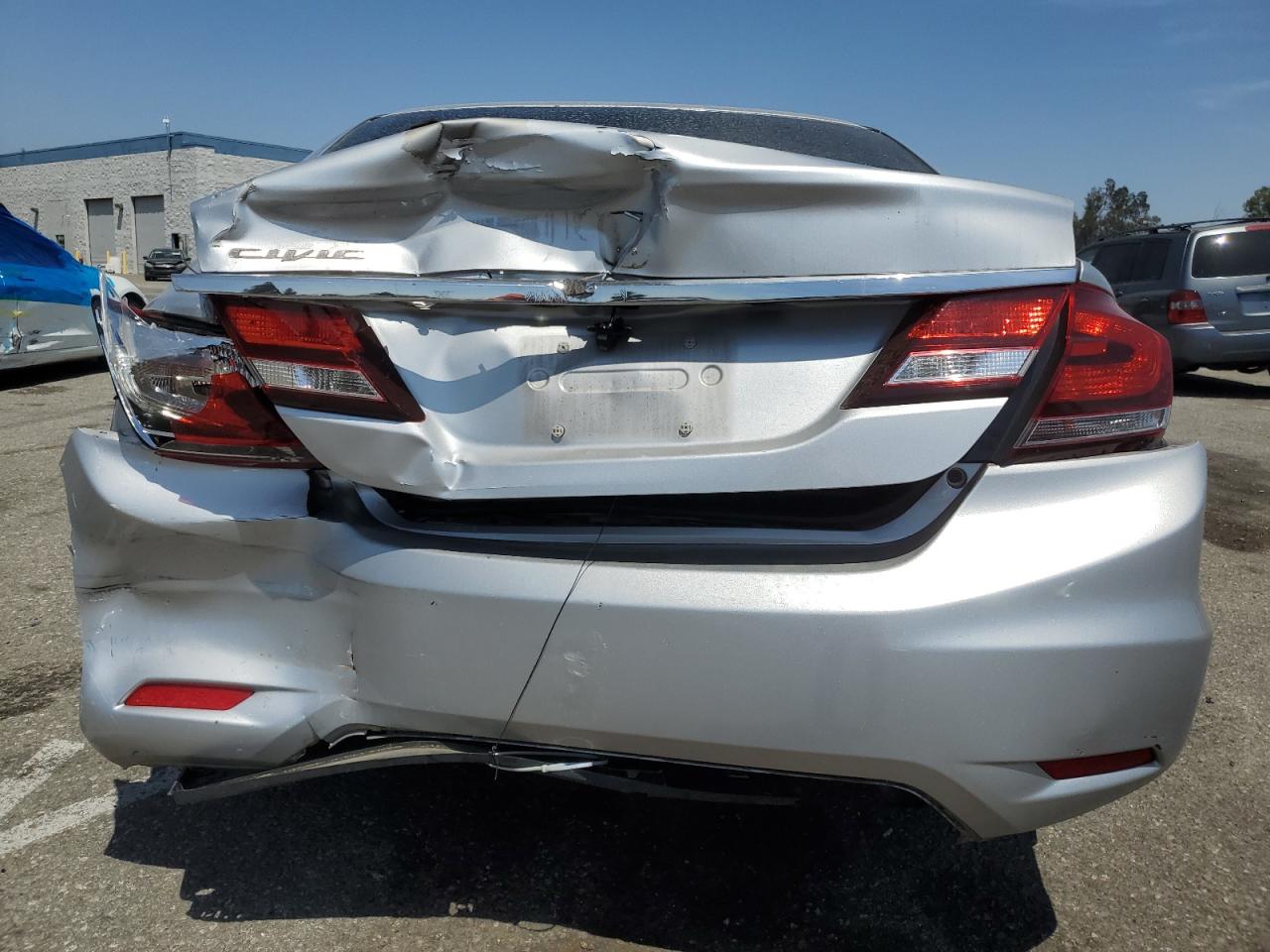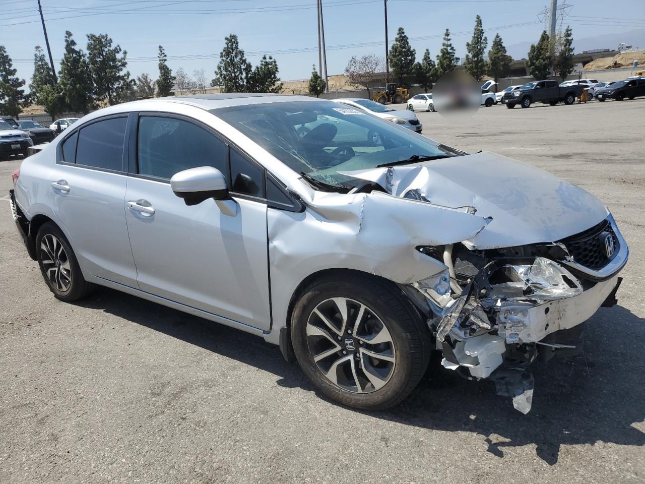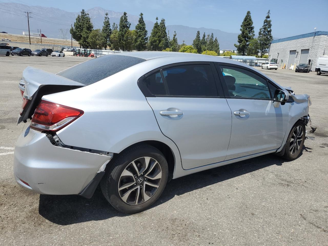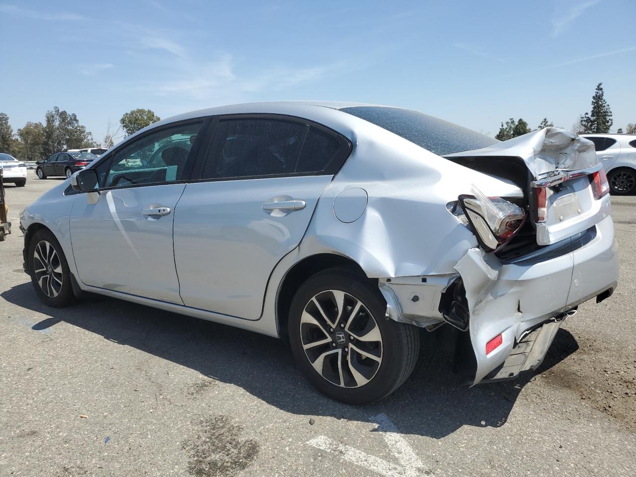 FairThis is a silver 2015 Honda Civic EX with front and rear-end damage. The vehicle has significant body damage but appears drivable. The interior shows normal wear and tear.